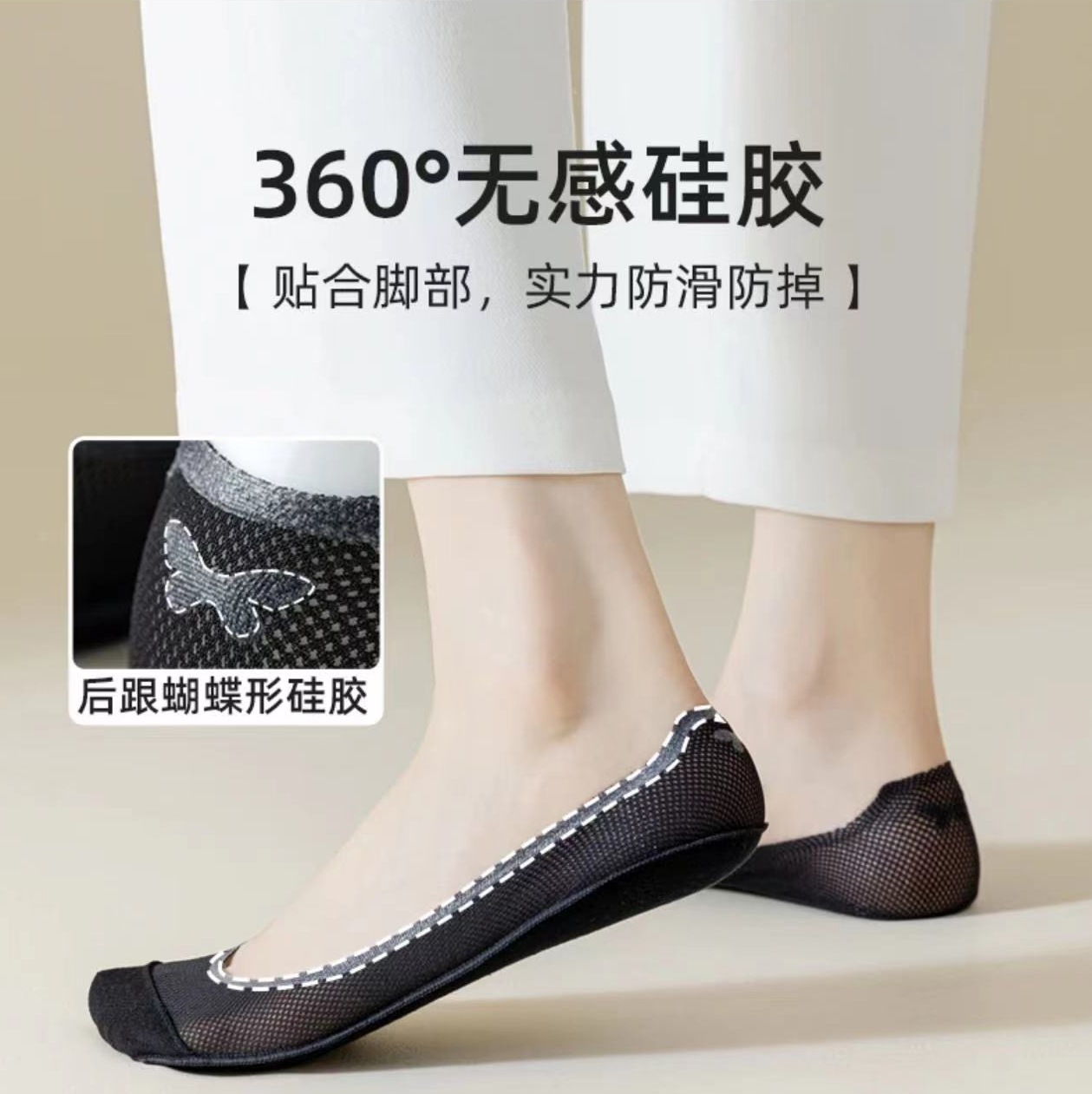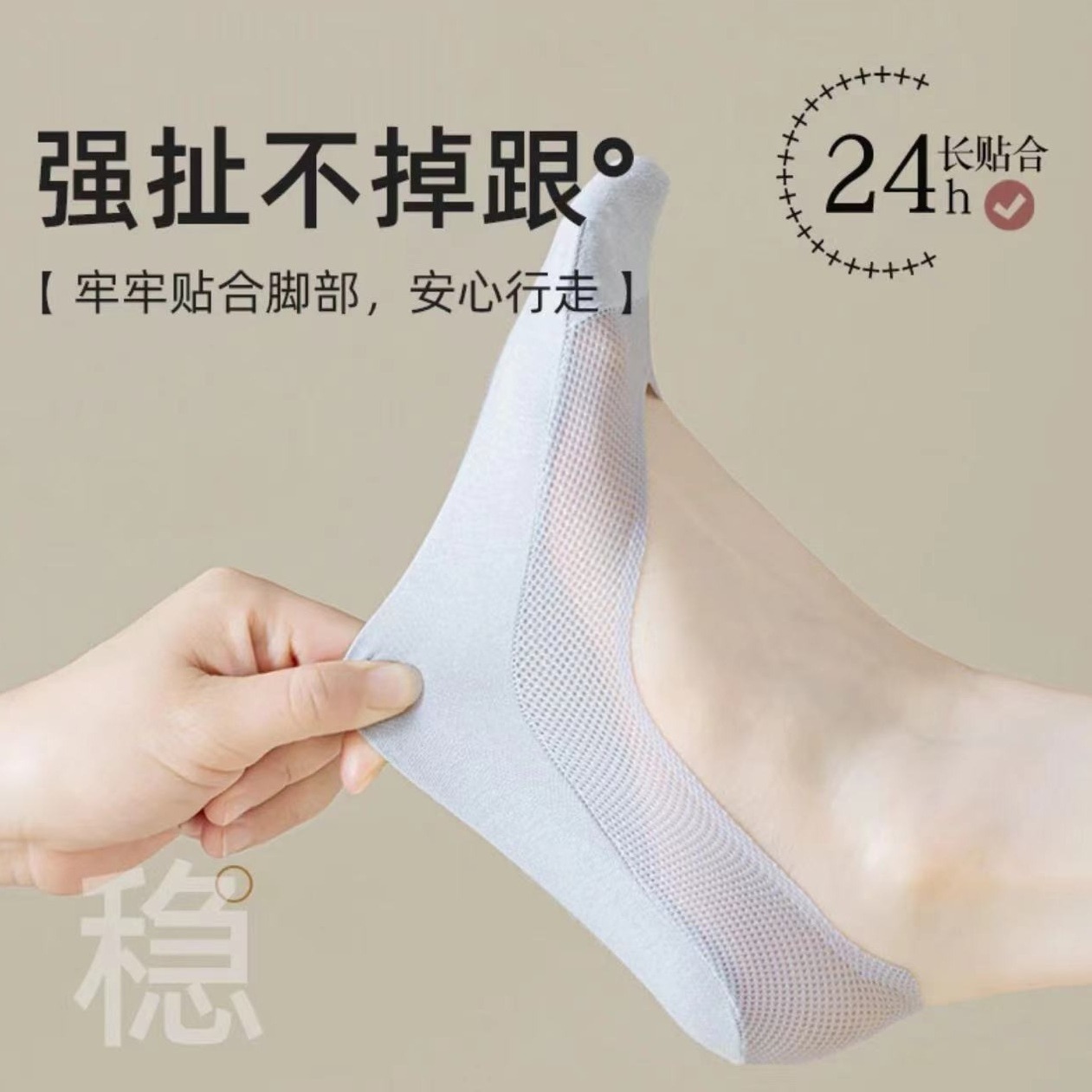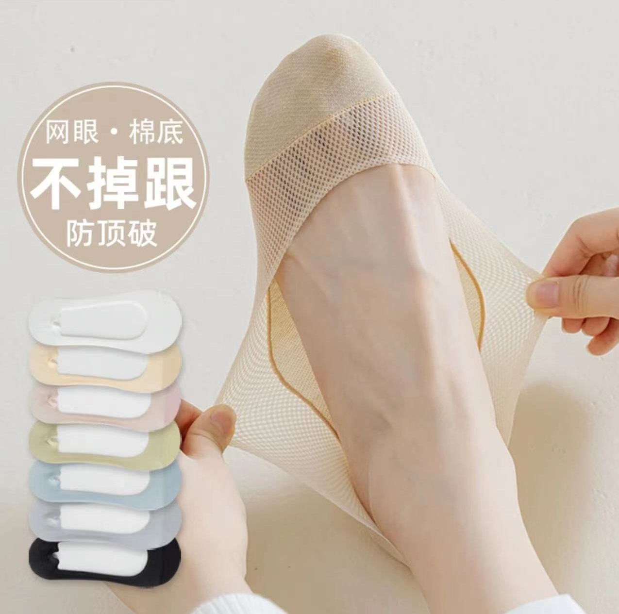 网眼冰丝女船袜春夏季薄款隐形不掉跟纯色棉底短袜套防滑透气女袜
