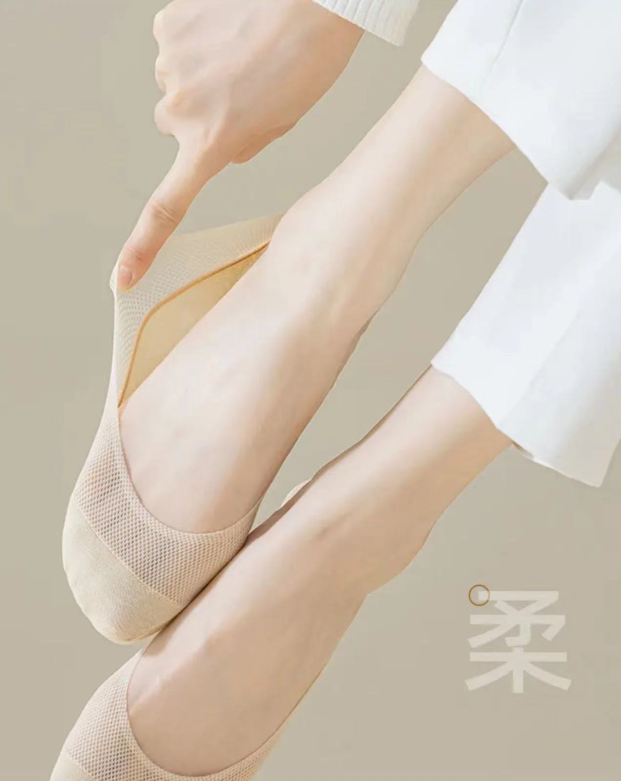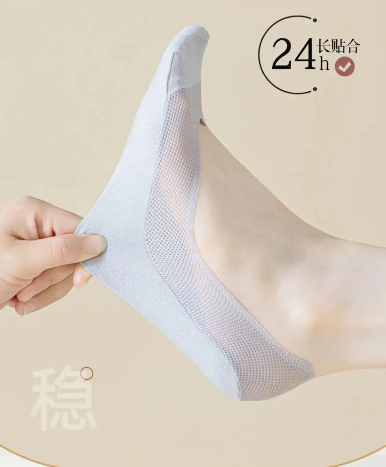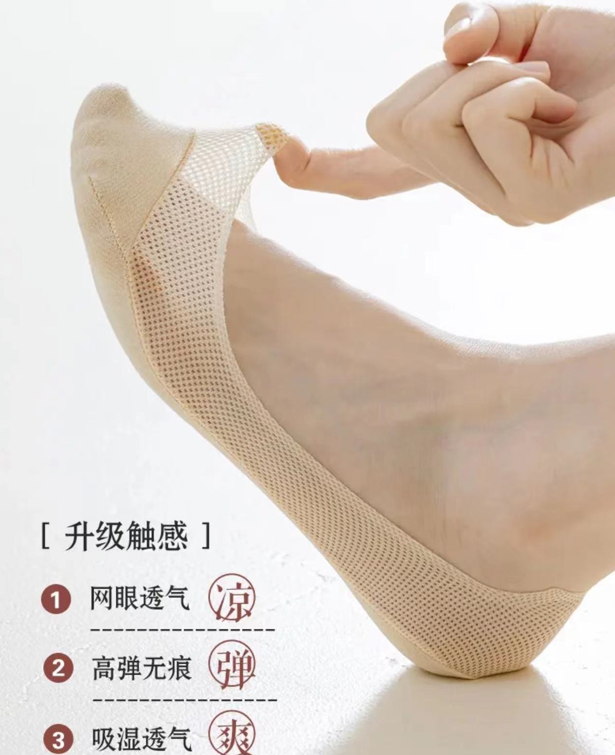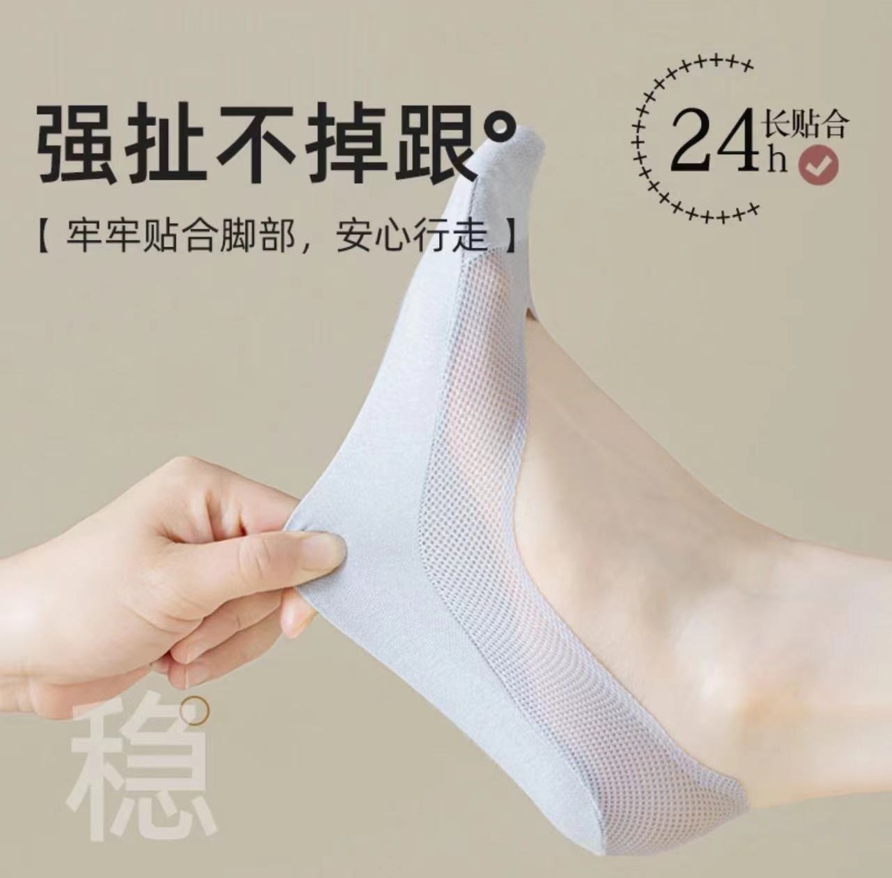 网眼冰丝女船袜春夏季薄款隐形不掉跟纯色棉底短袜套防滑透气女袜