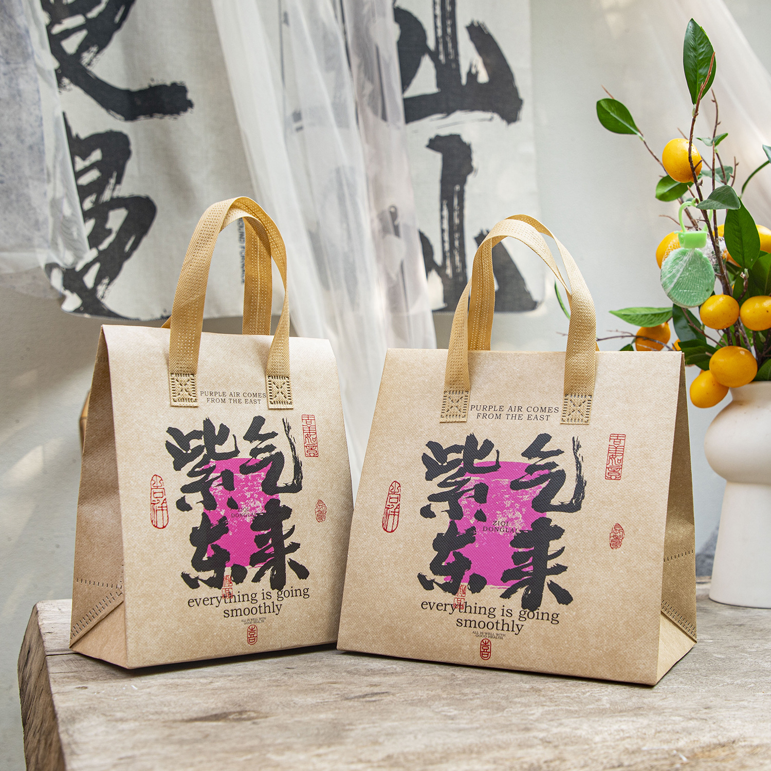 无纺布防水防油打包袋蛋糕奶茶餐饮手提铝箔袋牛皮纸塑外卖保温袋