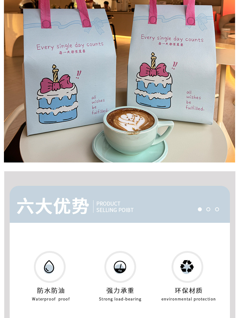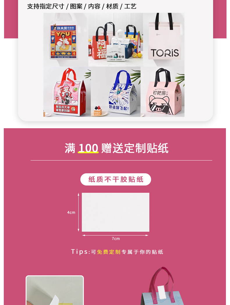 6寸8寸外卖打包袋蛋糕甜品包装袋子高颜值定logo制无纺布保温袋