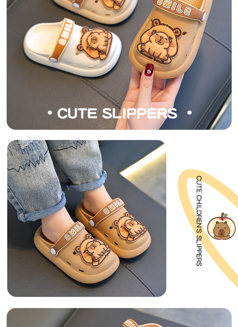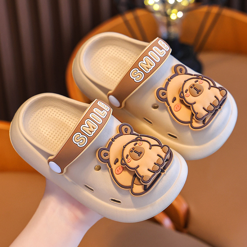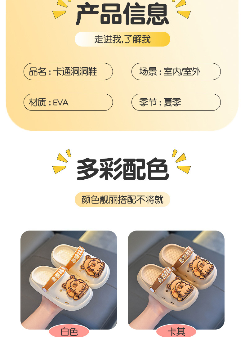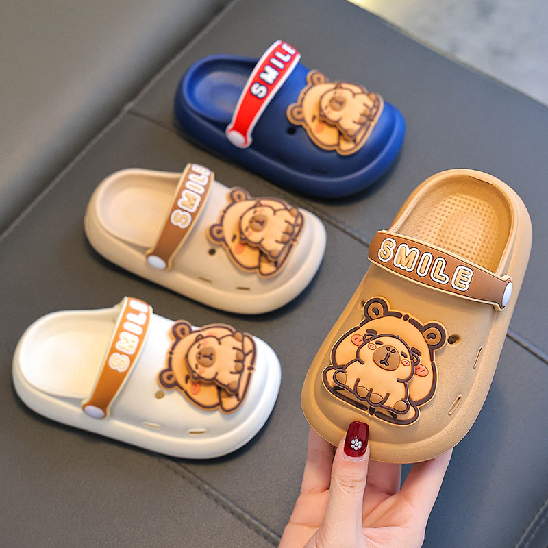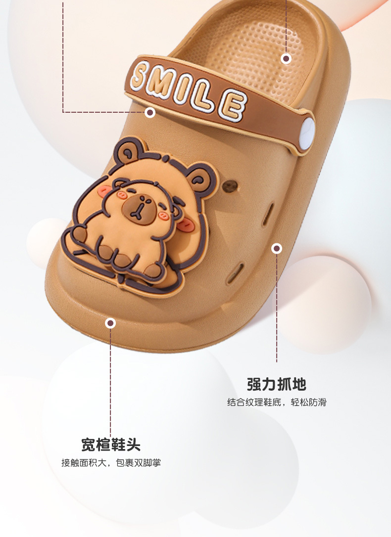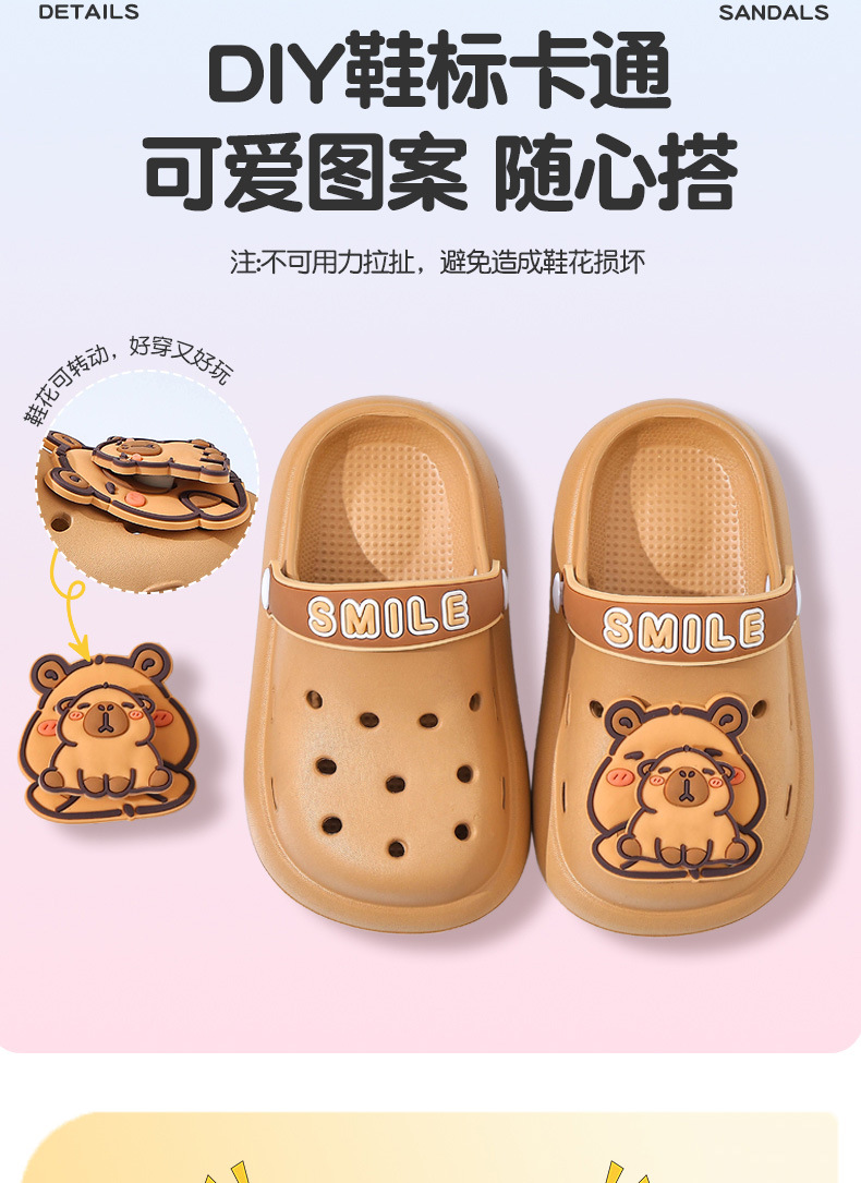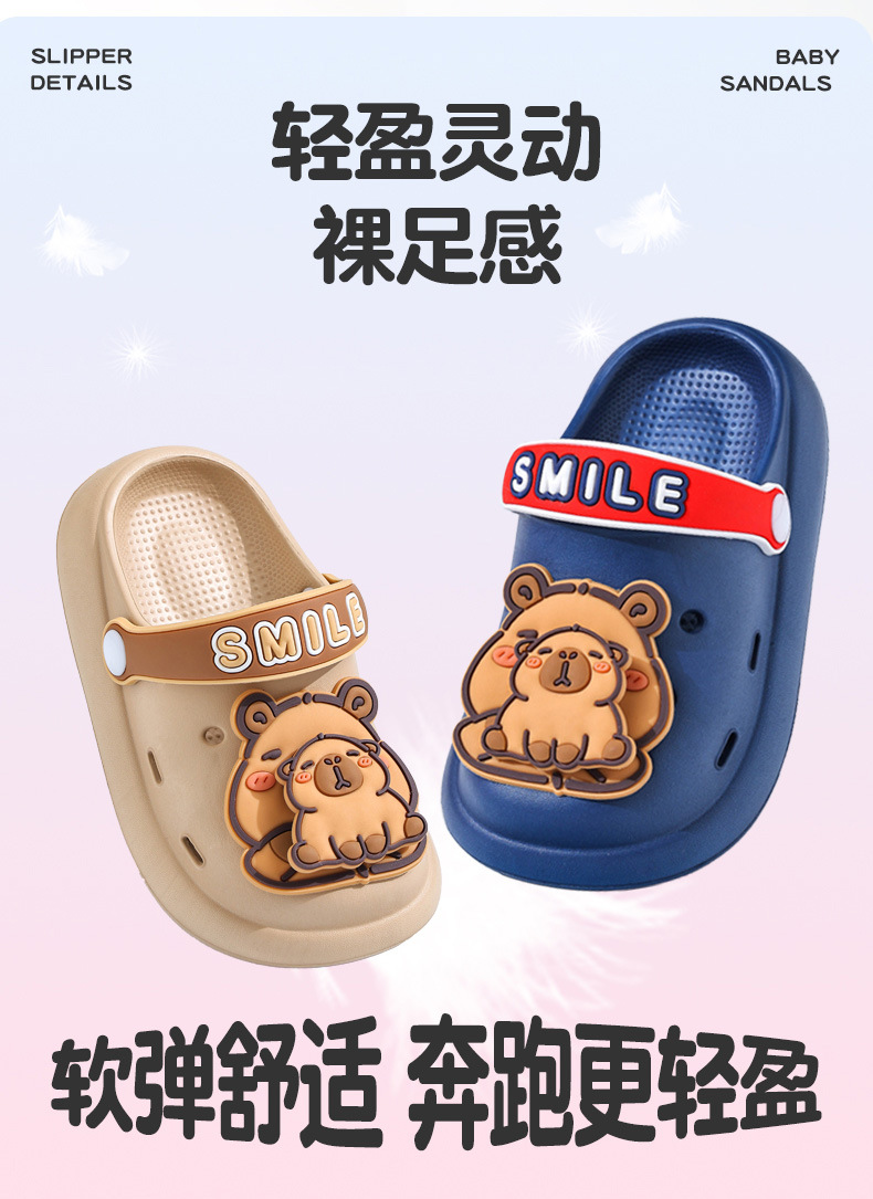 儿童凉拖鞋夏卡皮巴拉男童防滑踩屎感包头透气洞洞鞋中大童沙滩鞋
