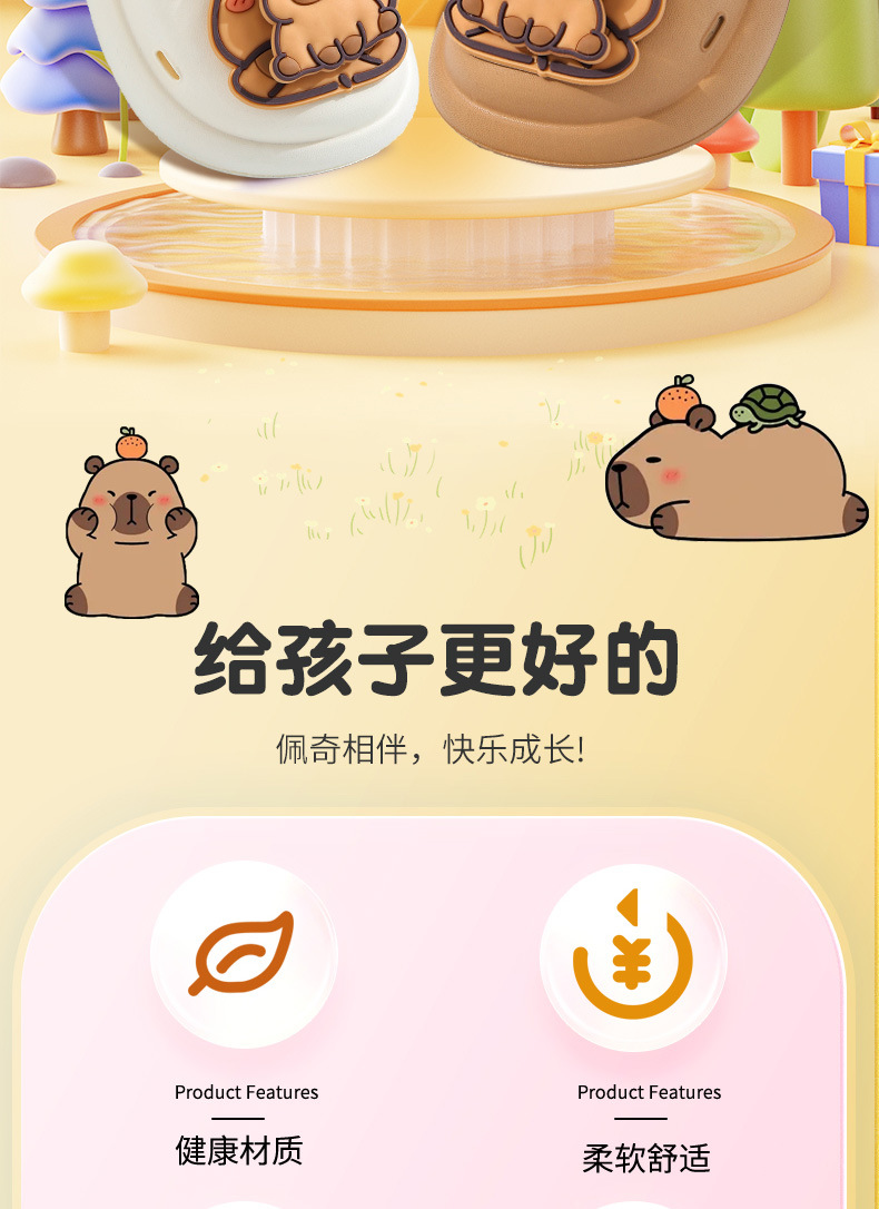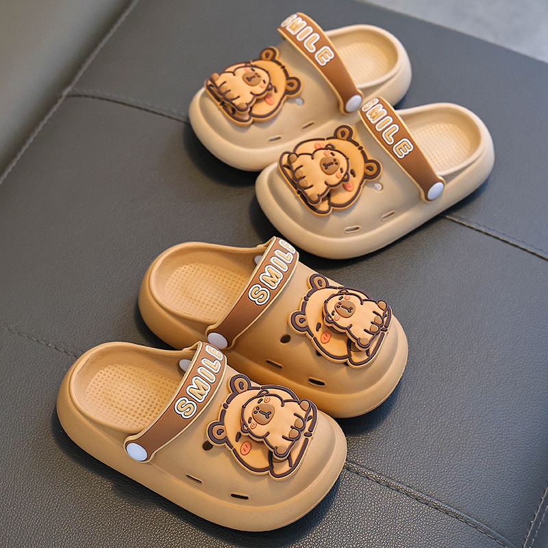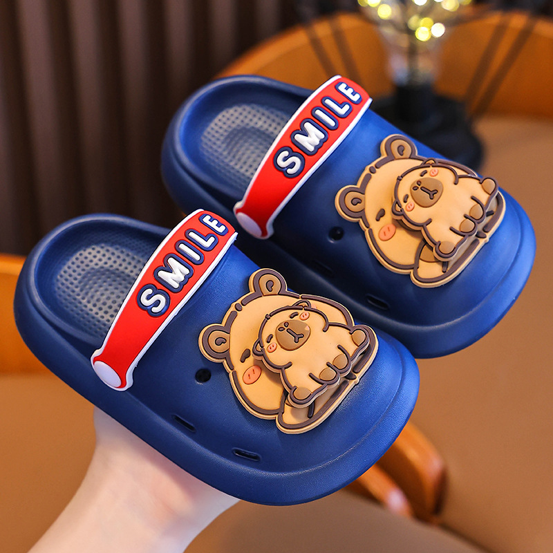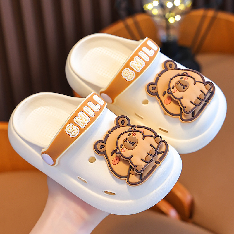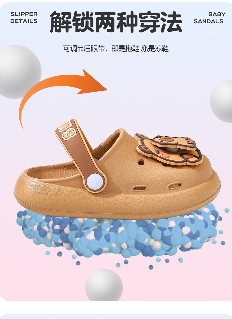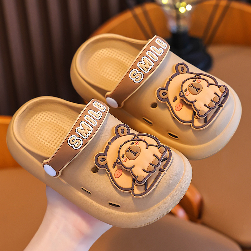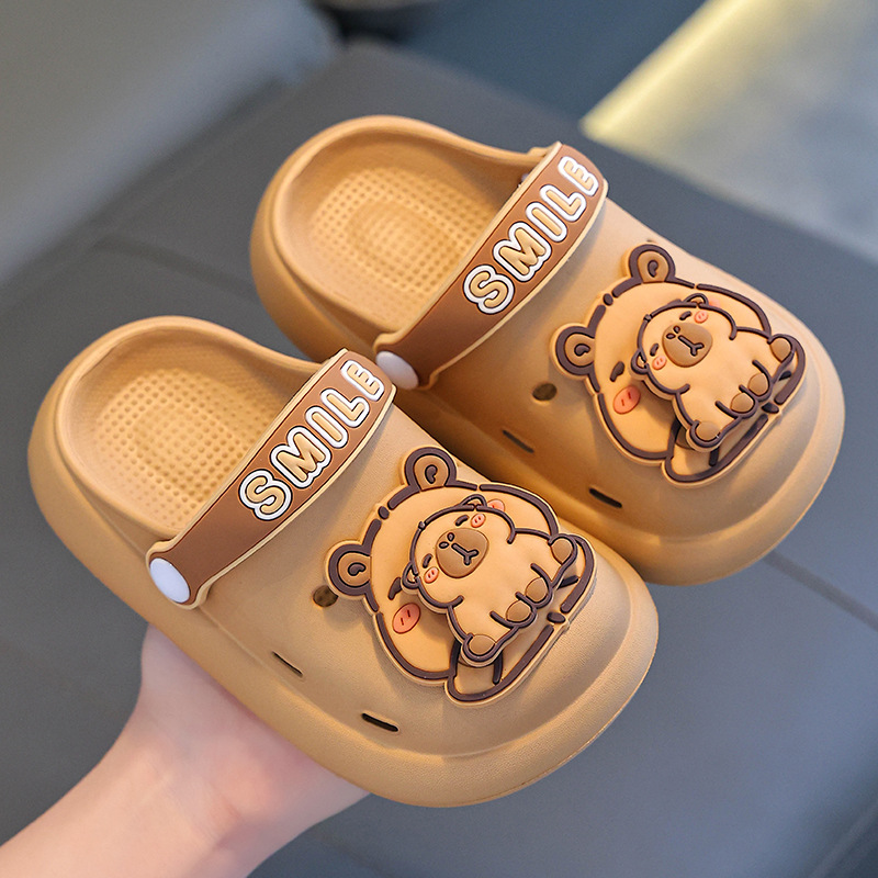 儿童凉拖鞋夏卡皮巴拉男童防滑踩屎感包头透气洞洞鞋中大童沙滩鞋