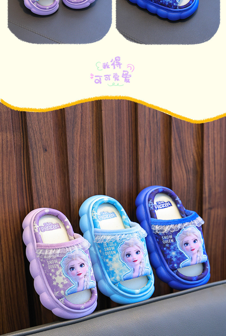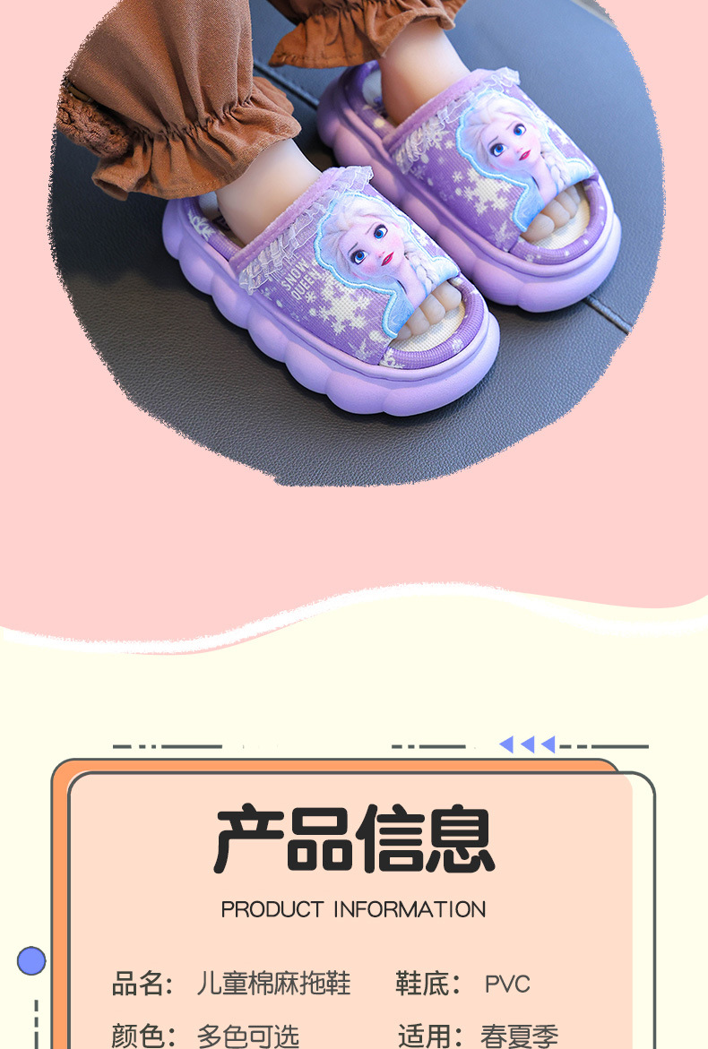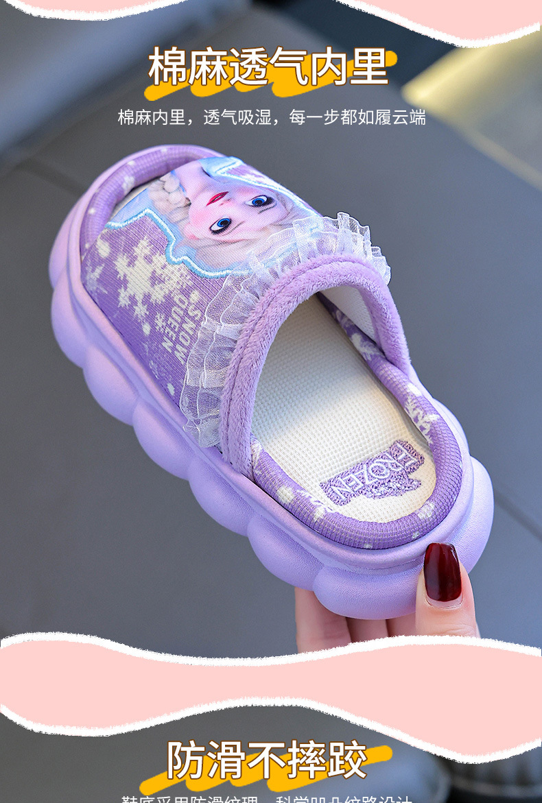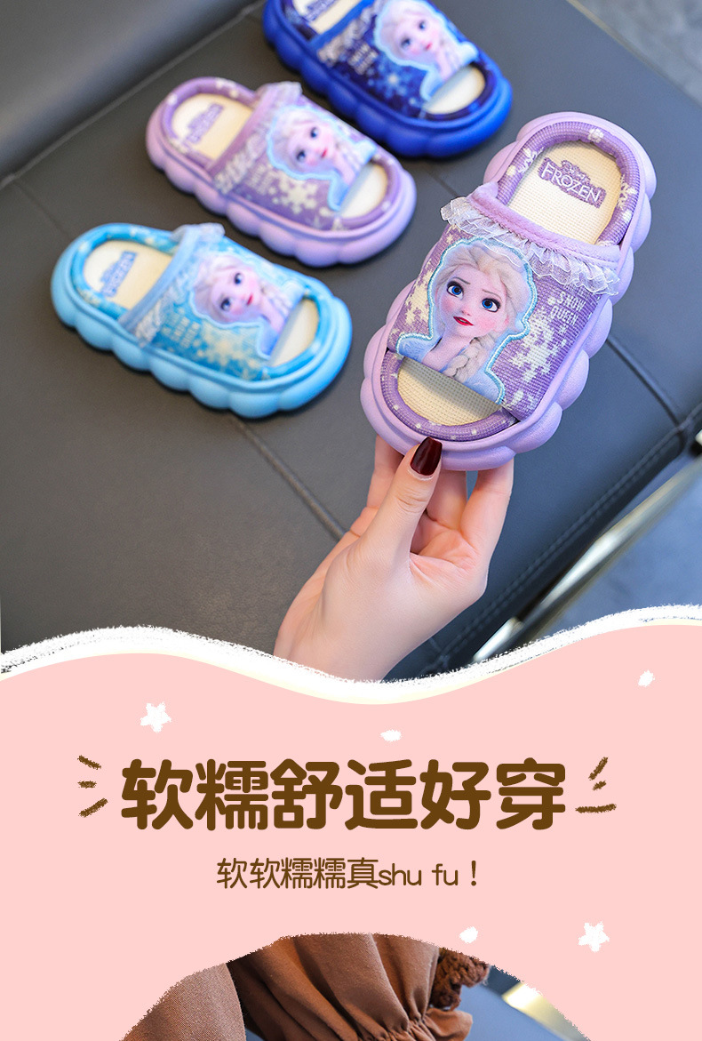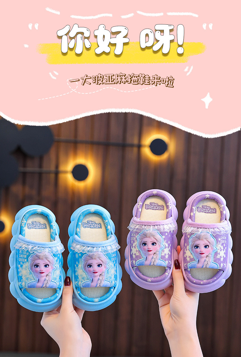 春秋儿童亚麻凉拖鞋艾莎公主女童居家四季透气宝宝地板舒适拖鞋