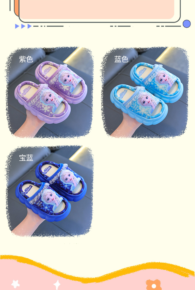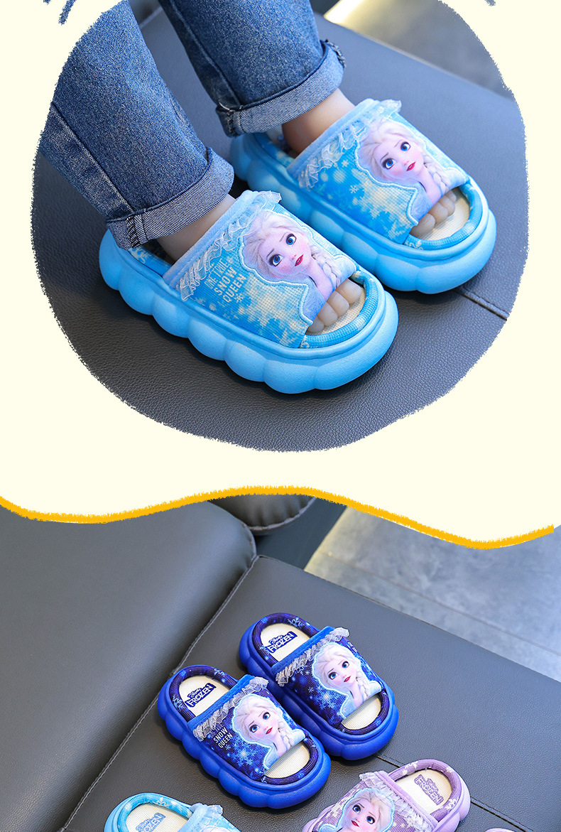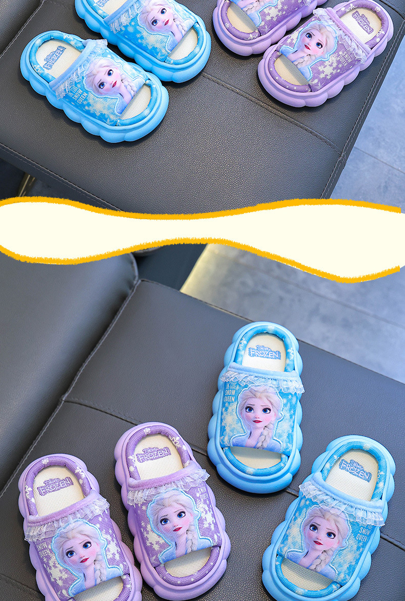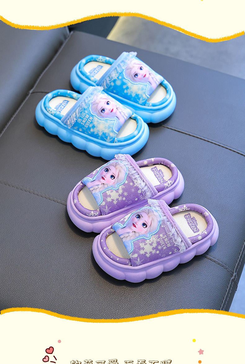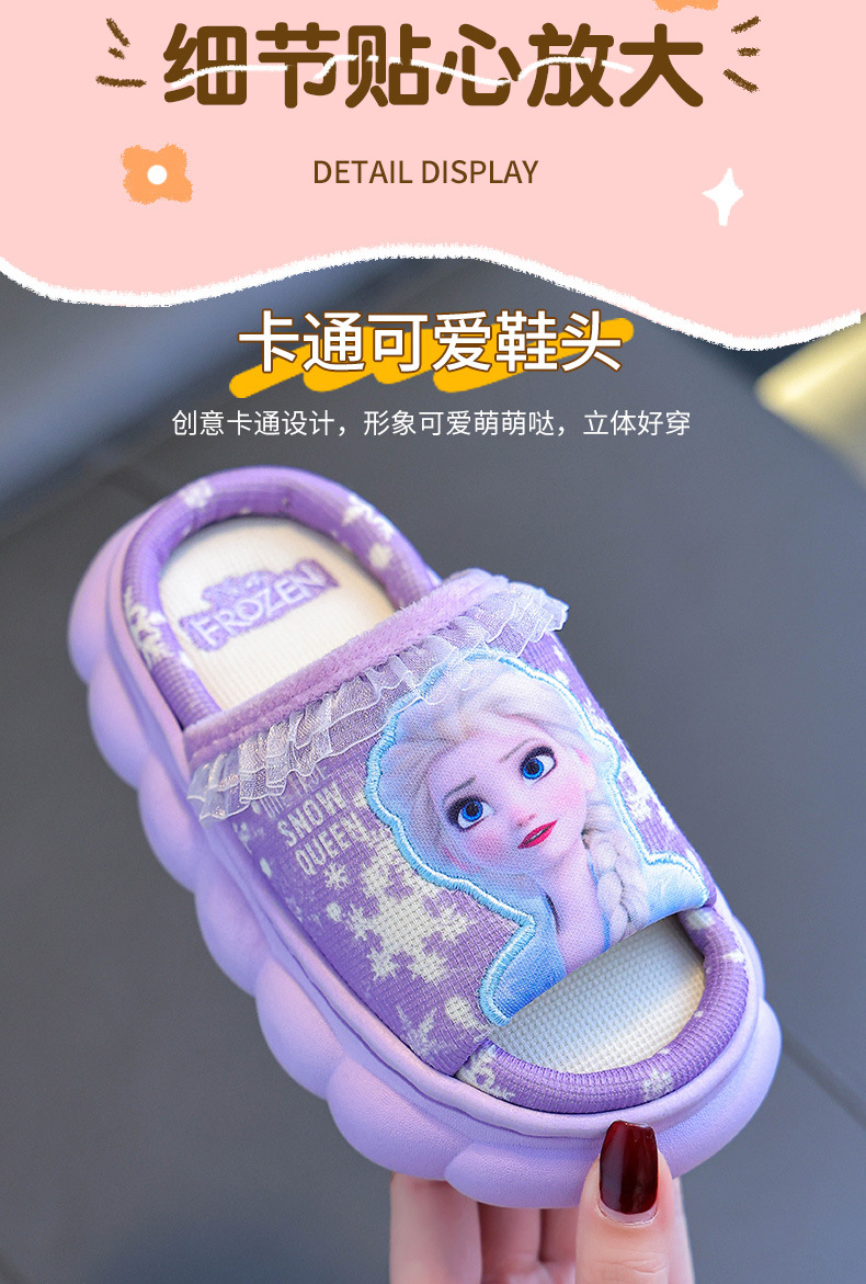 春秋儿童亚麻凉拖鞋艾莎公主女童居家四季透气宝宝地板舒适拖鞋