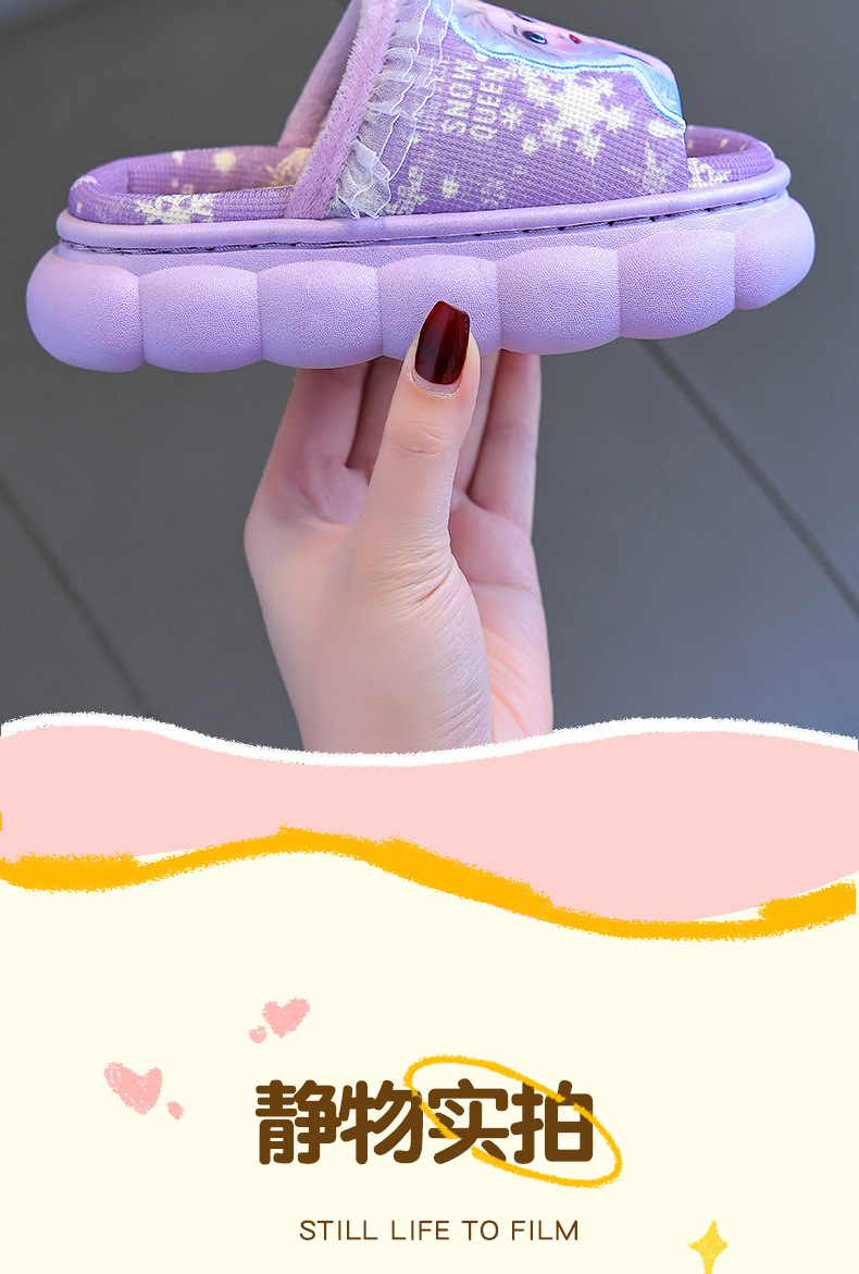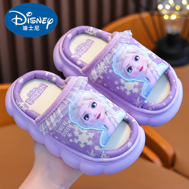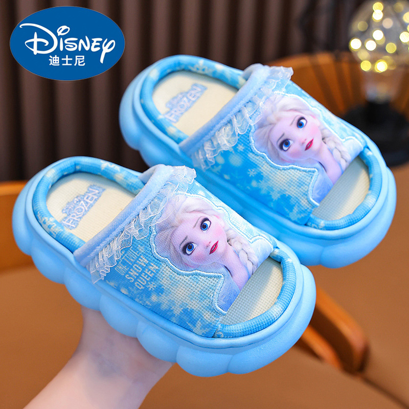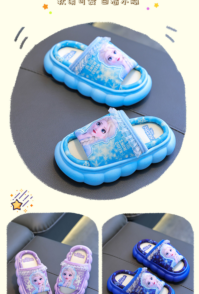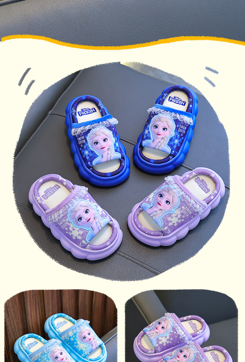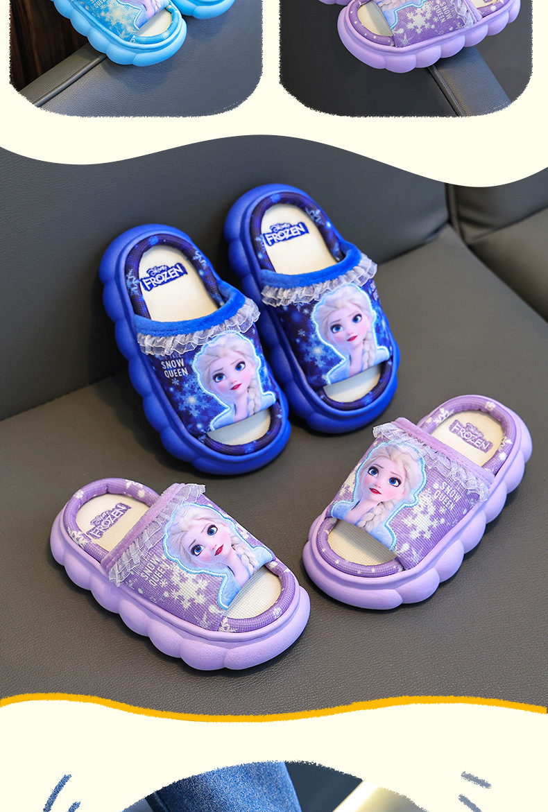 春秋儿童亚麻凉拖鞋艾莎公主女童居家四季透气宝宝地板舒适拖鞋
