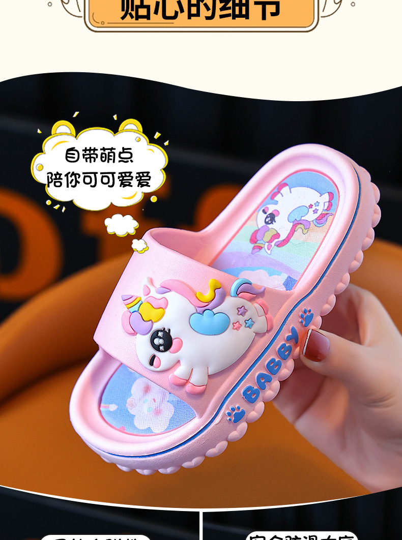 女宝拖鞋夏季儿童室内洗澡防滑女童卡通家居小女孩外穿独角兽凉拖