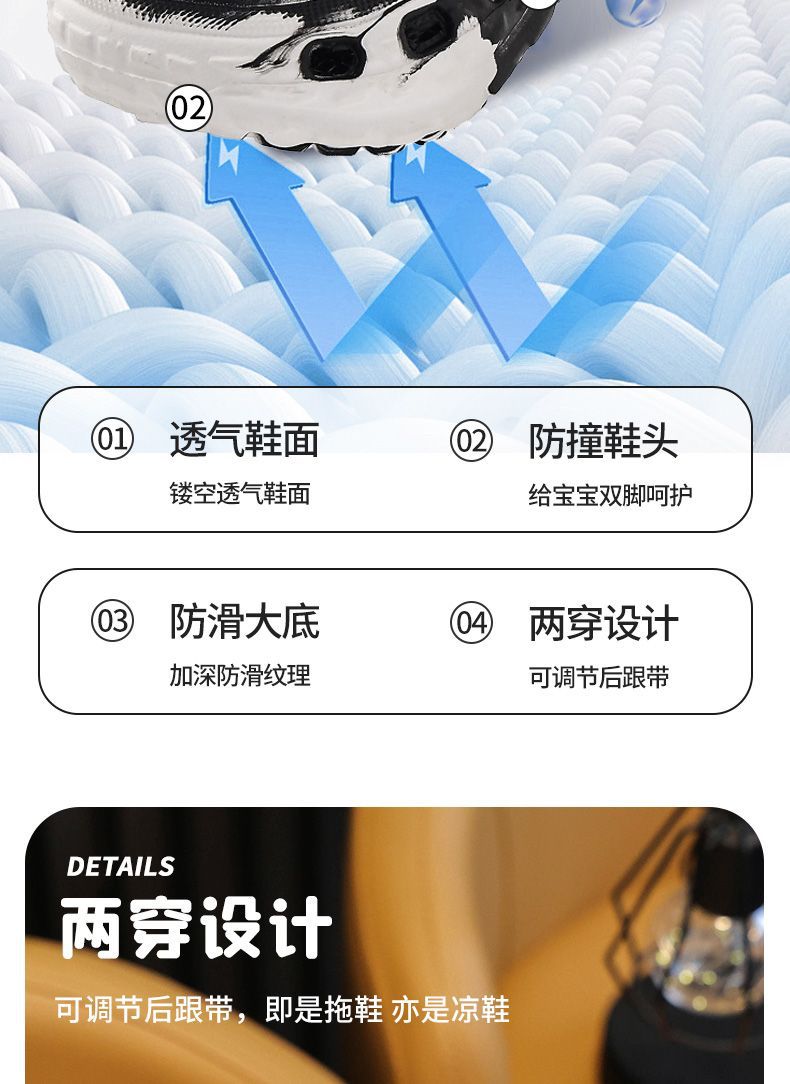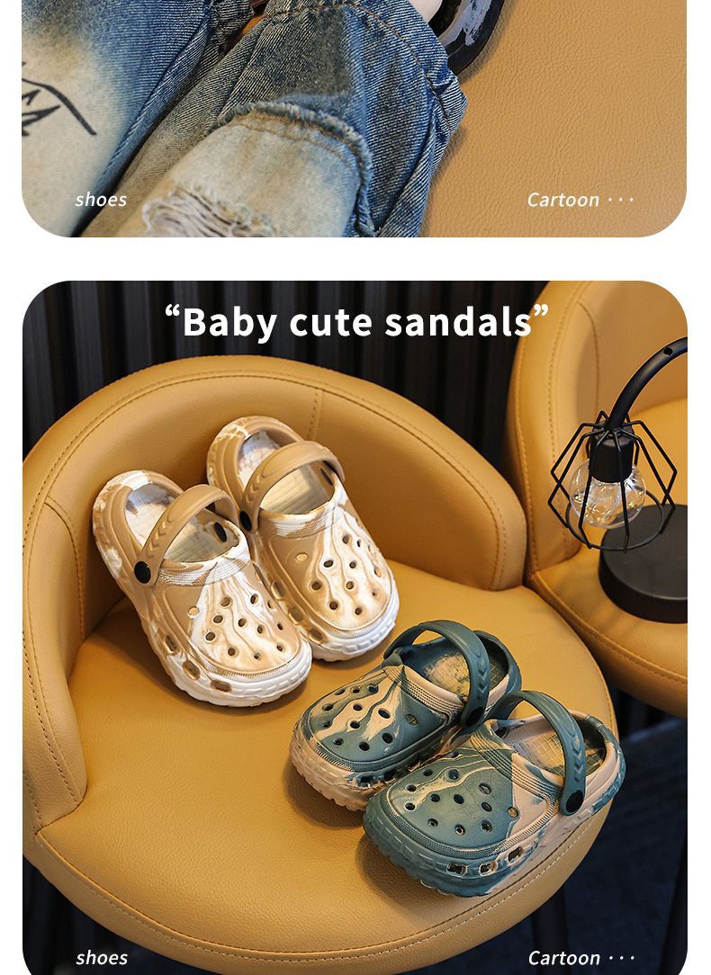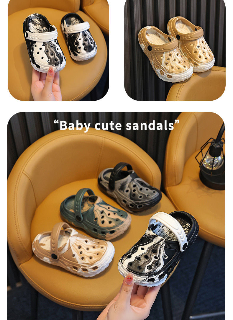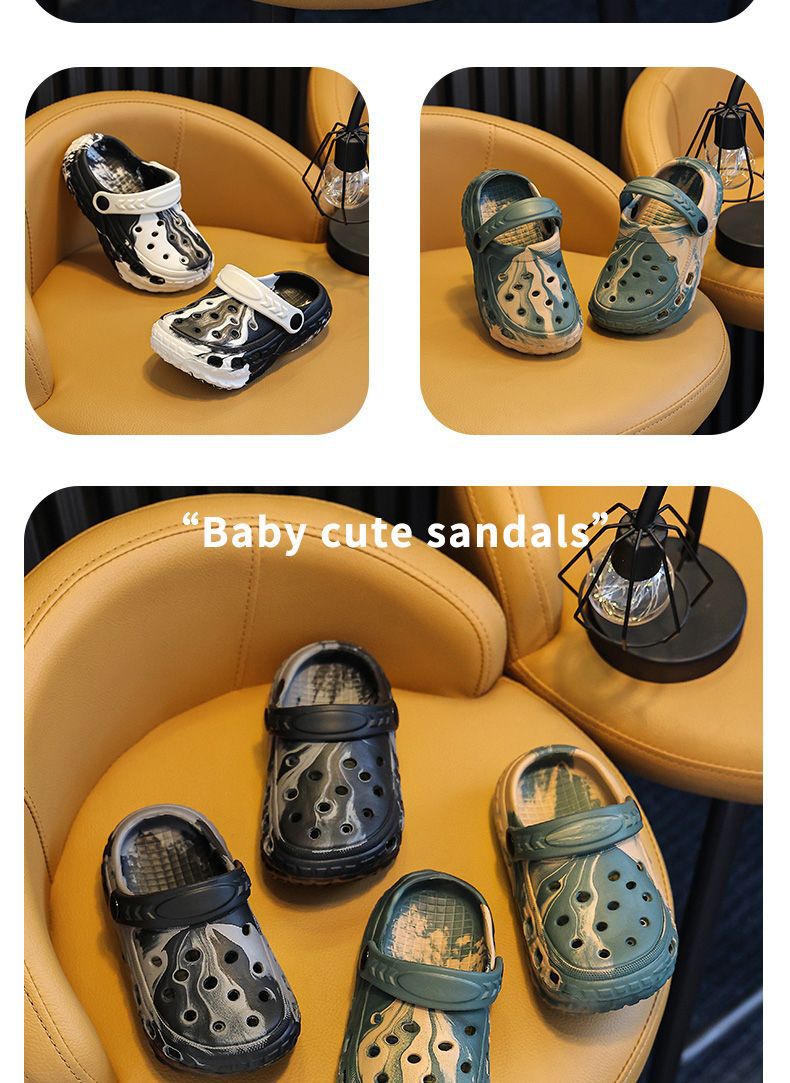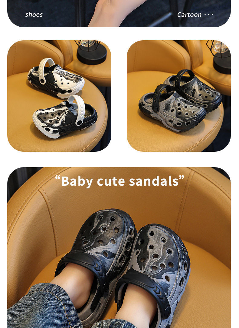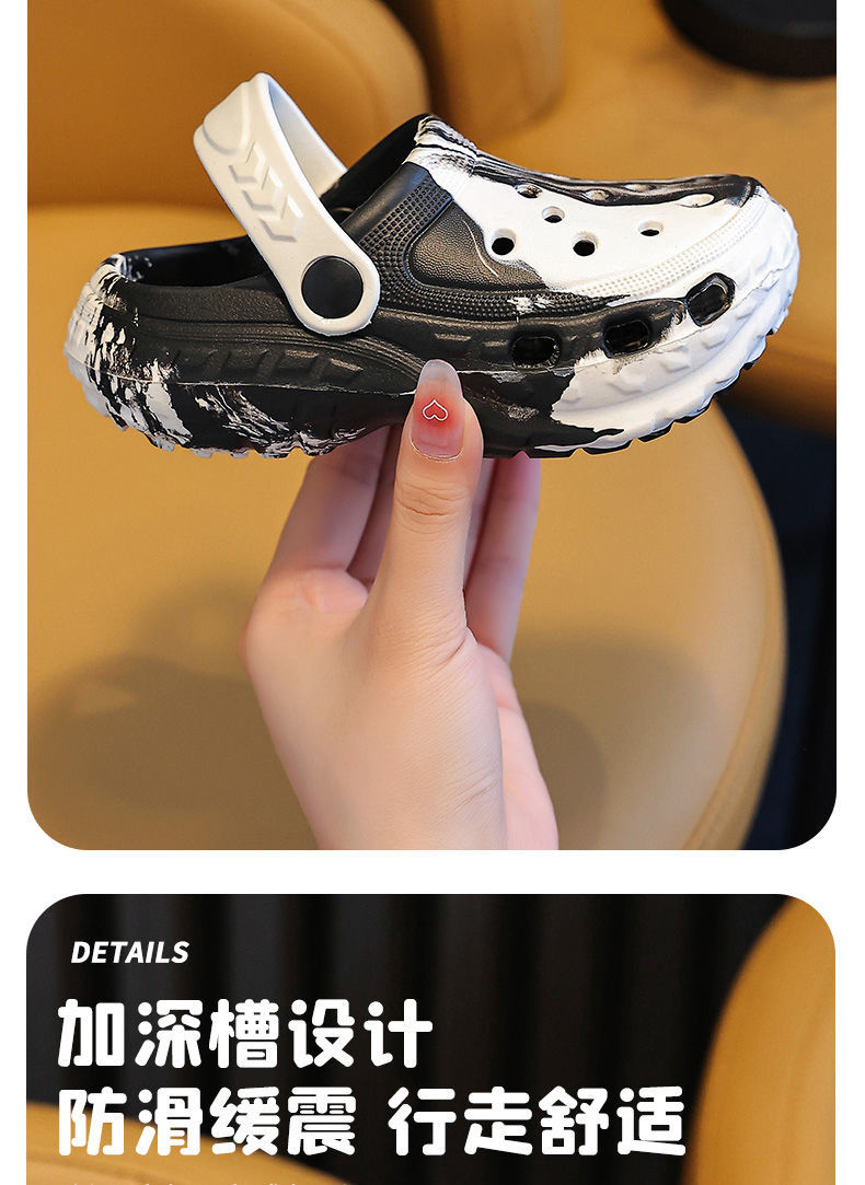 EVA儿童包头鞋男女童中大童凉拖户外居家防滑柔软小孩洞洞鞋包跟