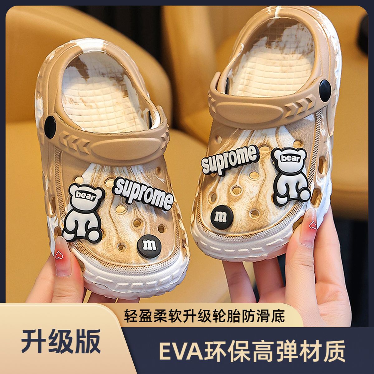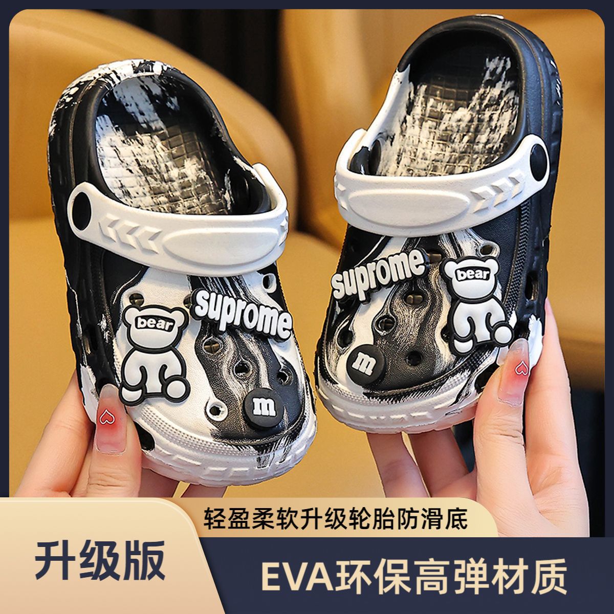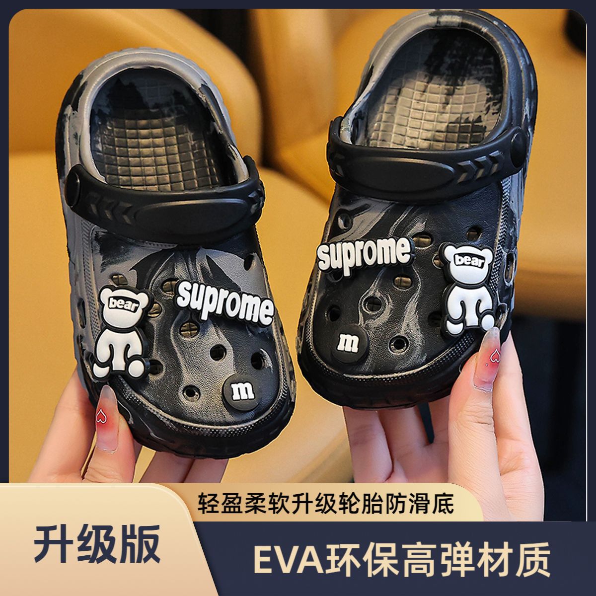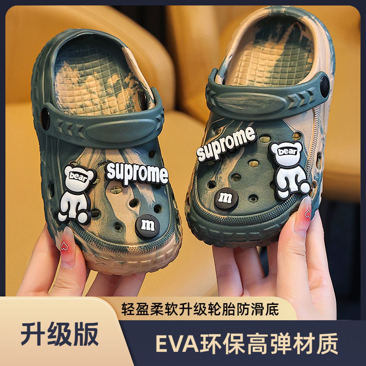 EVA儿童包头鞋男女童中大童凉拖户外居家防滑柔软小孩洞洞鞋包跟