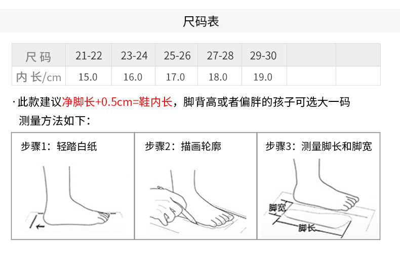 | inner length 15 cm21-size 22(内长15cm21-22码) | USD $1.21 | 97952 piece available |