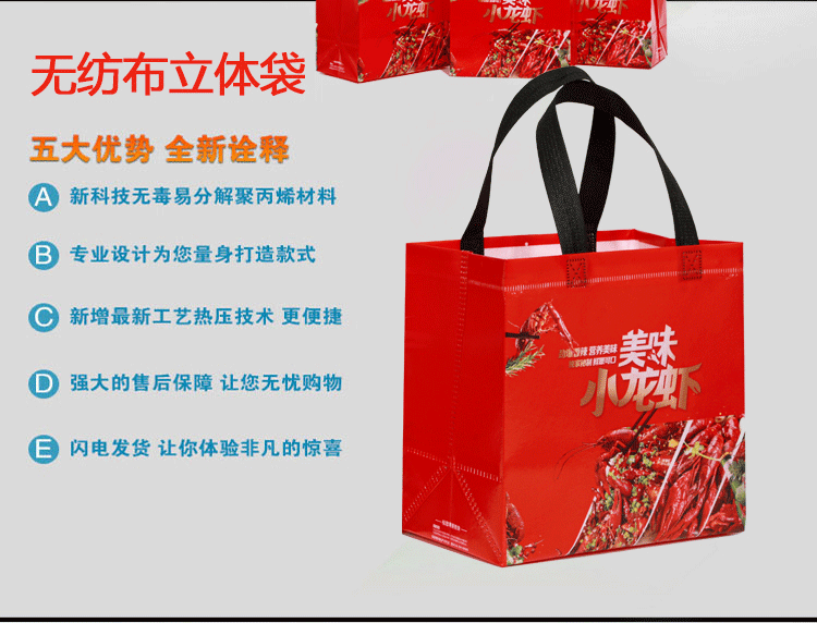 无纺布打包外卖袋子包袋加厚防水防油餐饮手提袋烧烤小龙虾包装袋