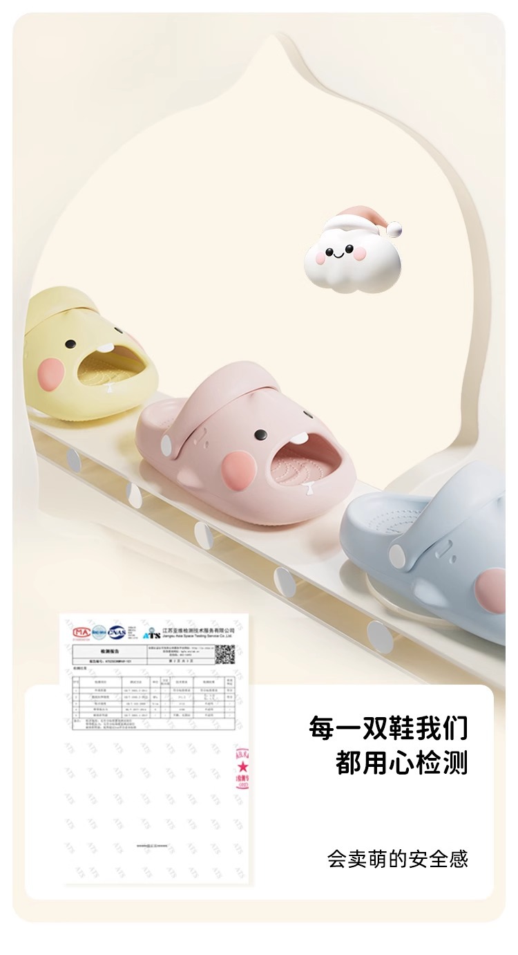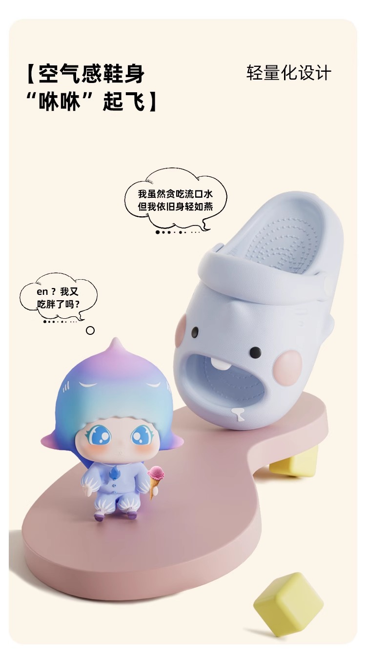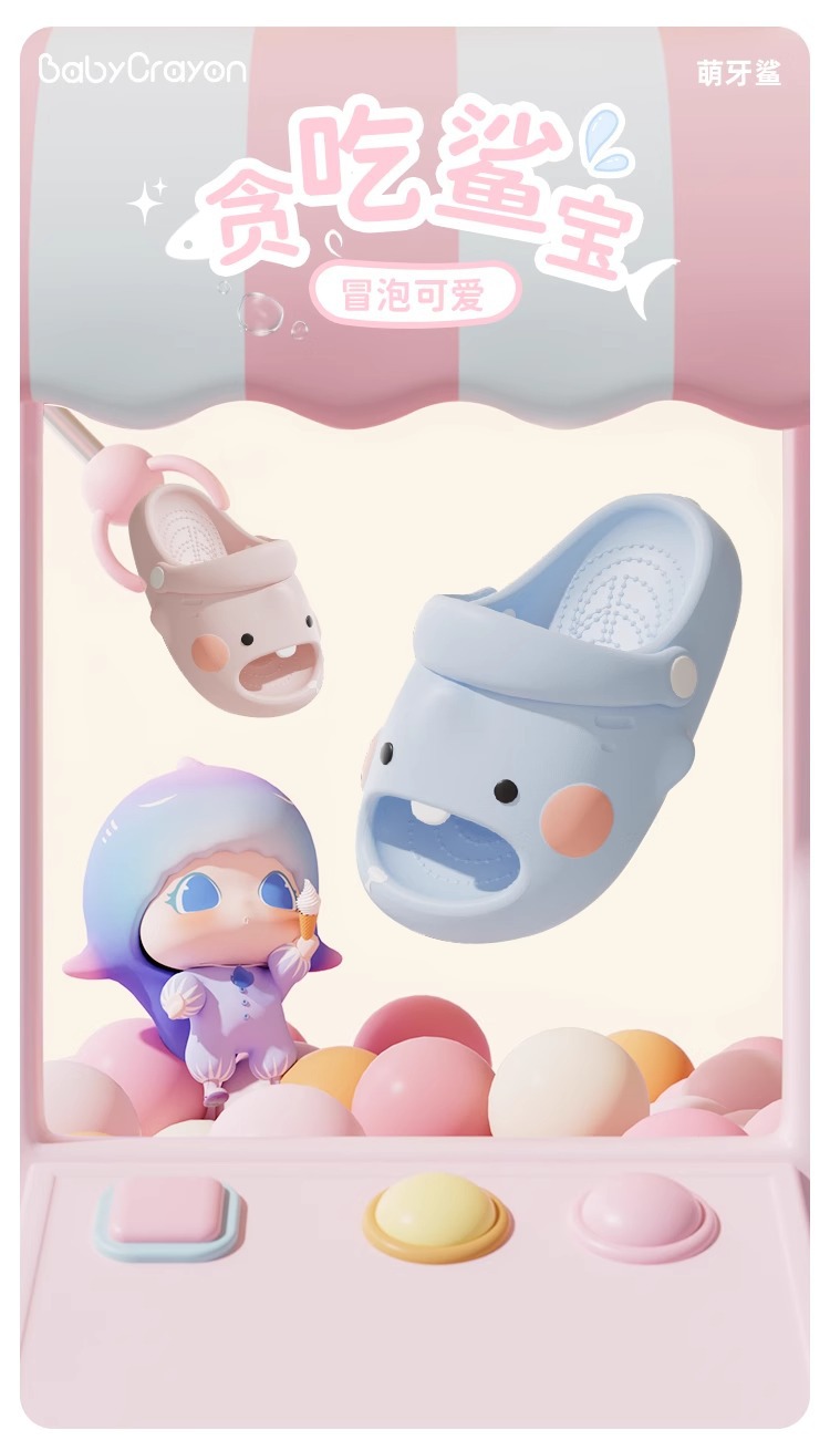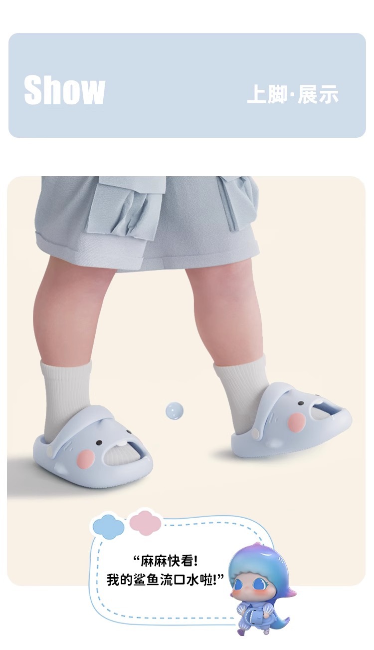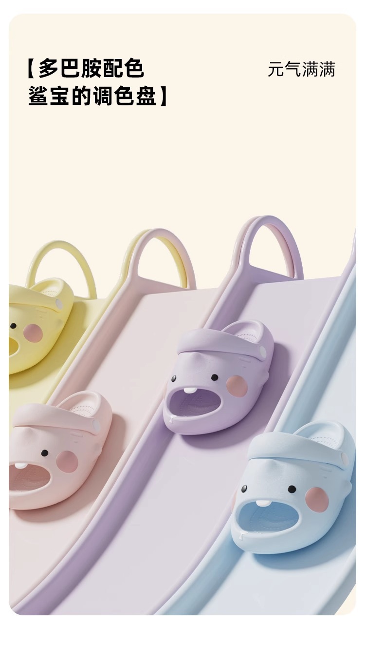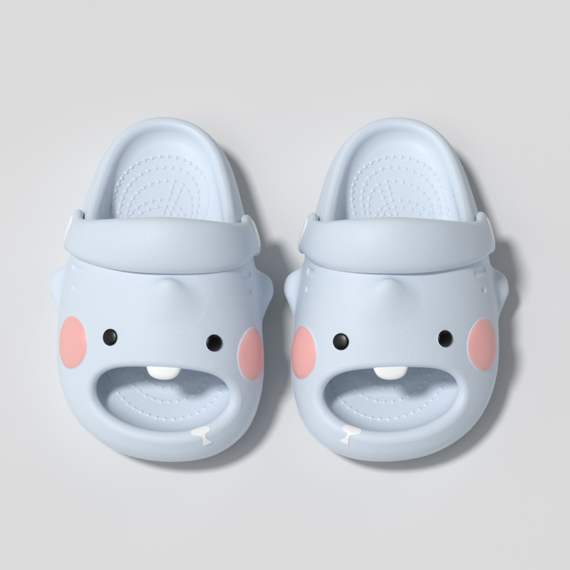 儿童拖鞋女童萌牙鲨夏季室内洗澡EVA防滑凉拖鞋中小童绑带洞洞鞋
