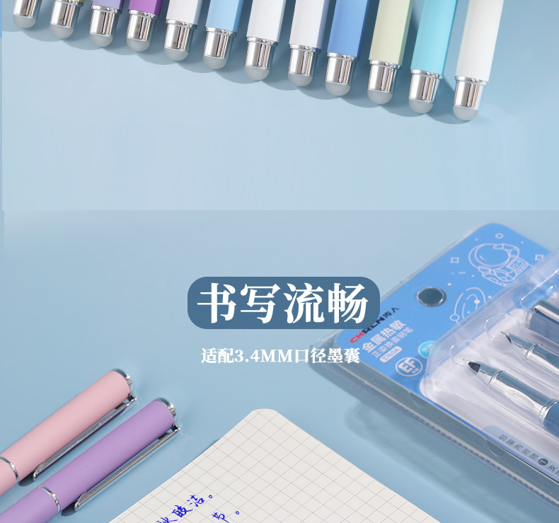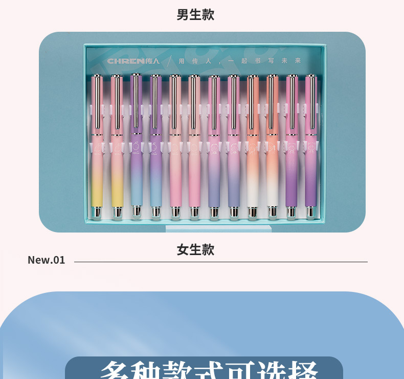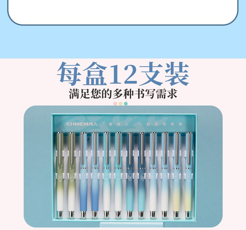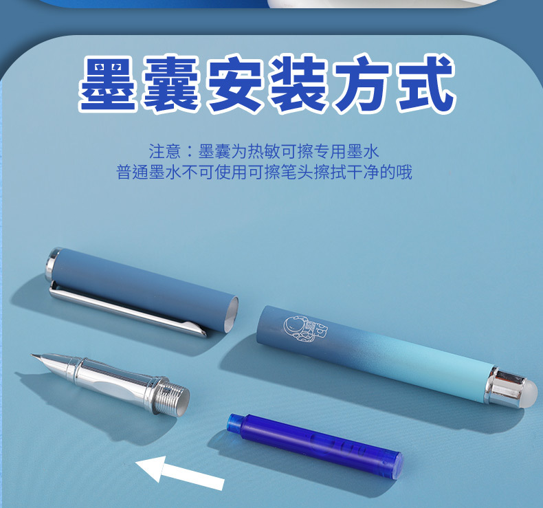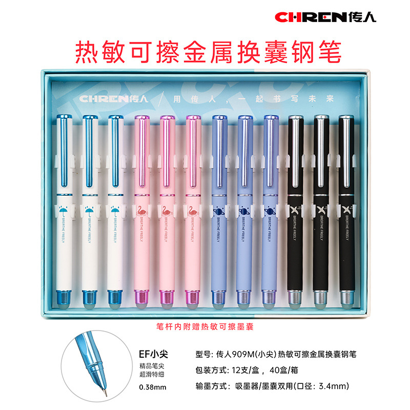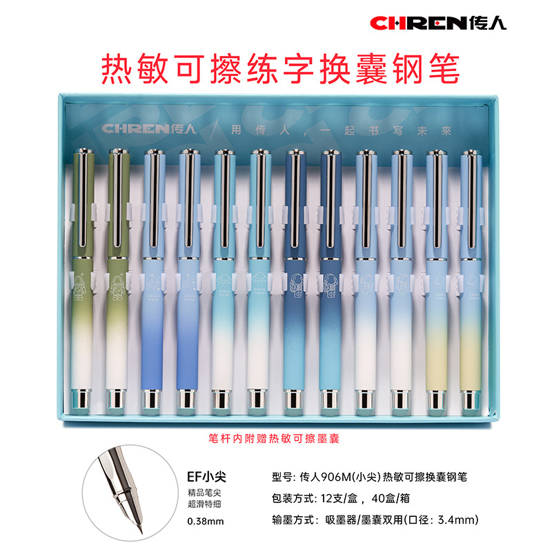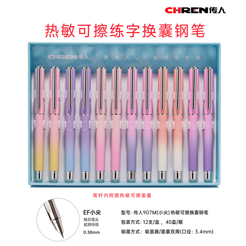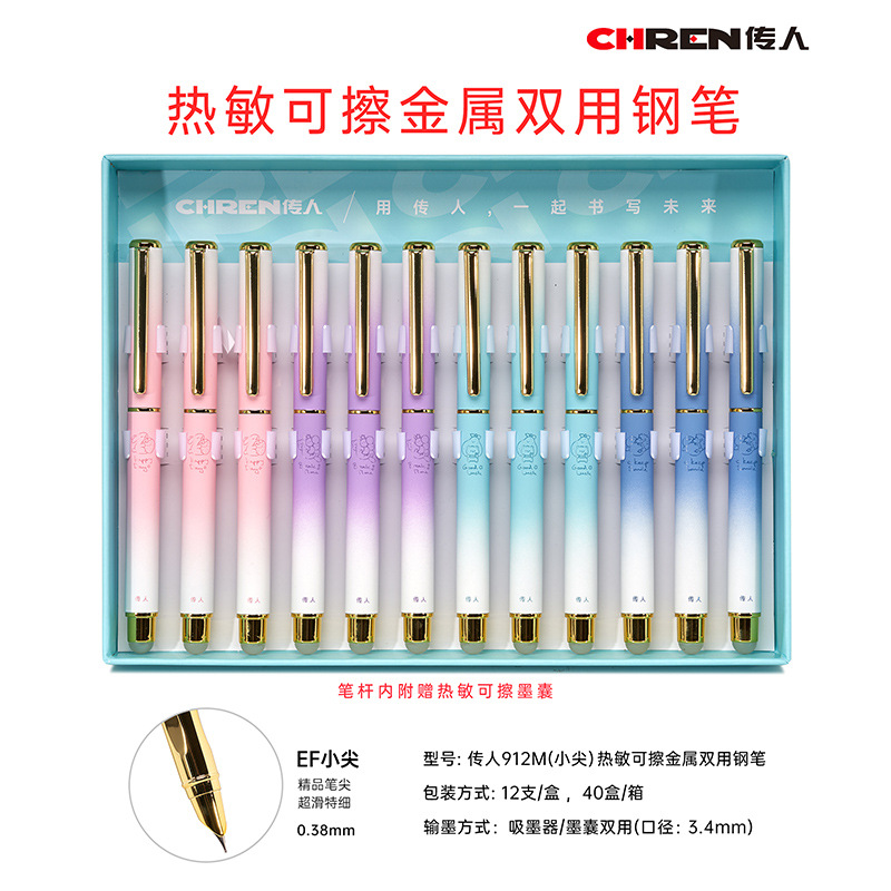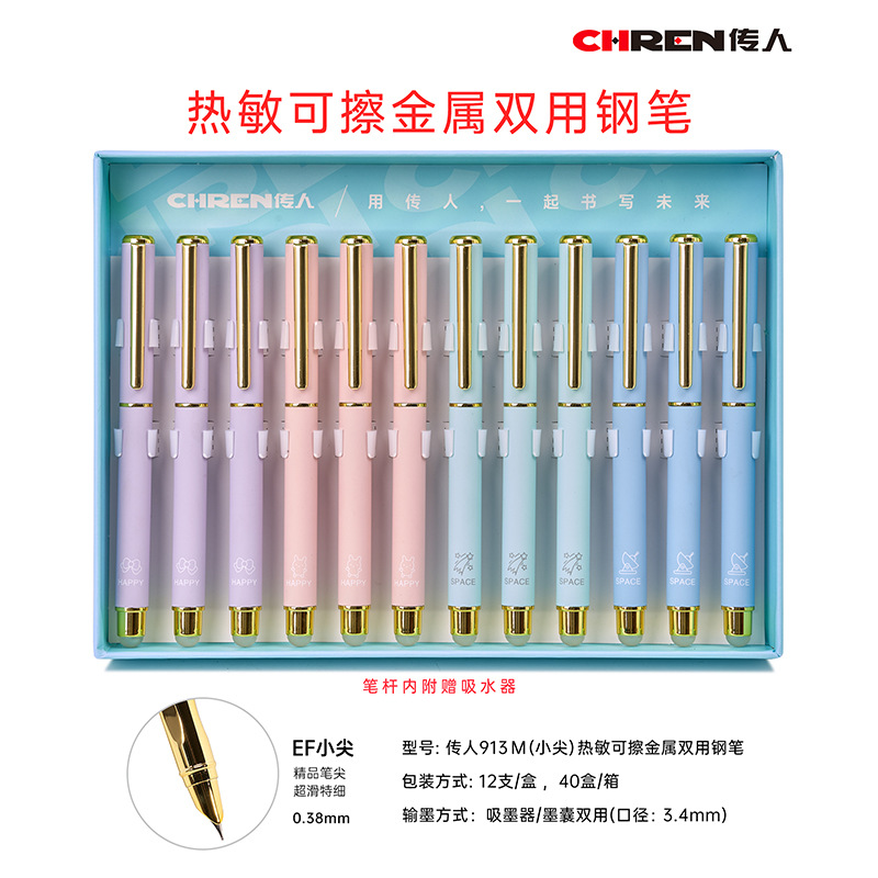 传人热敏可擦金属渐变钢笔 小学生三年级正姿专用卡通盒装钢笔