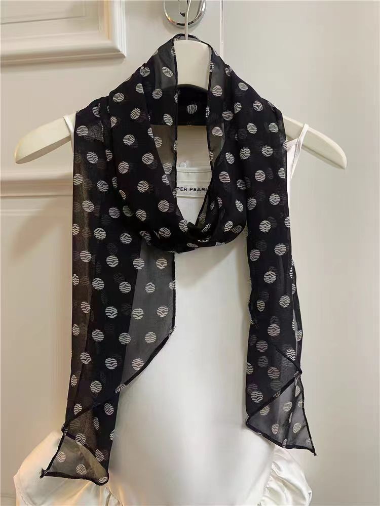 棕色波点丝巾印花高级百搭配饰系脖女2025年新款发带绑发长条围巾