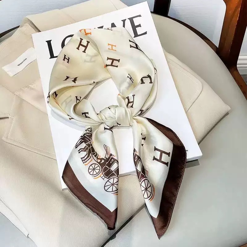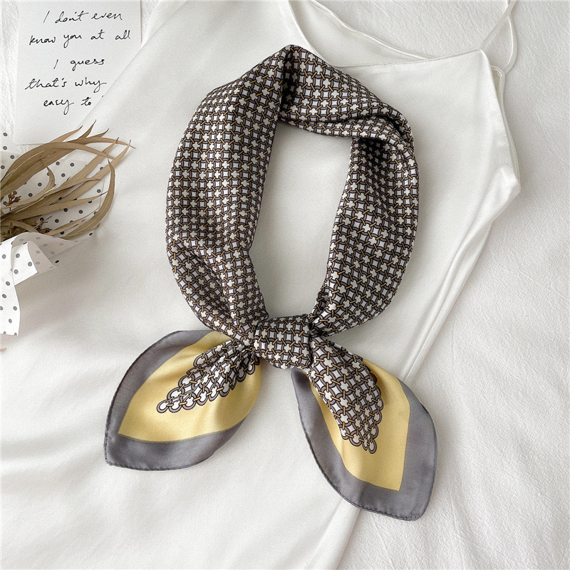 70丝巾方巾高级感 韩系时尚百搭职业仿真丝小领巾复古印花丝巾女
