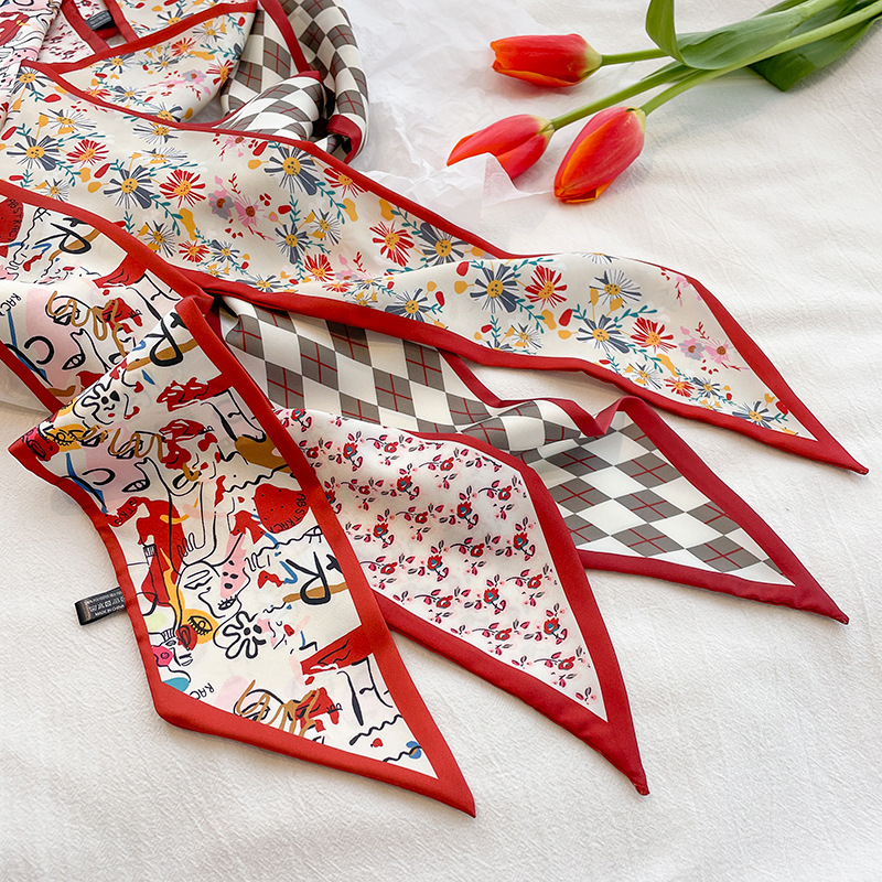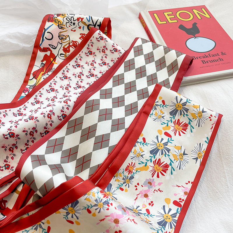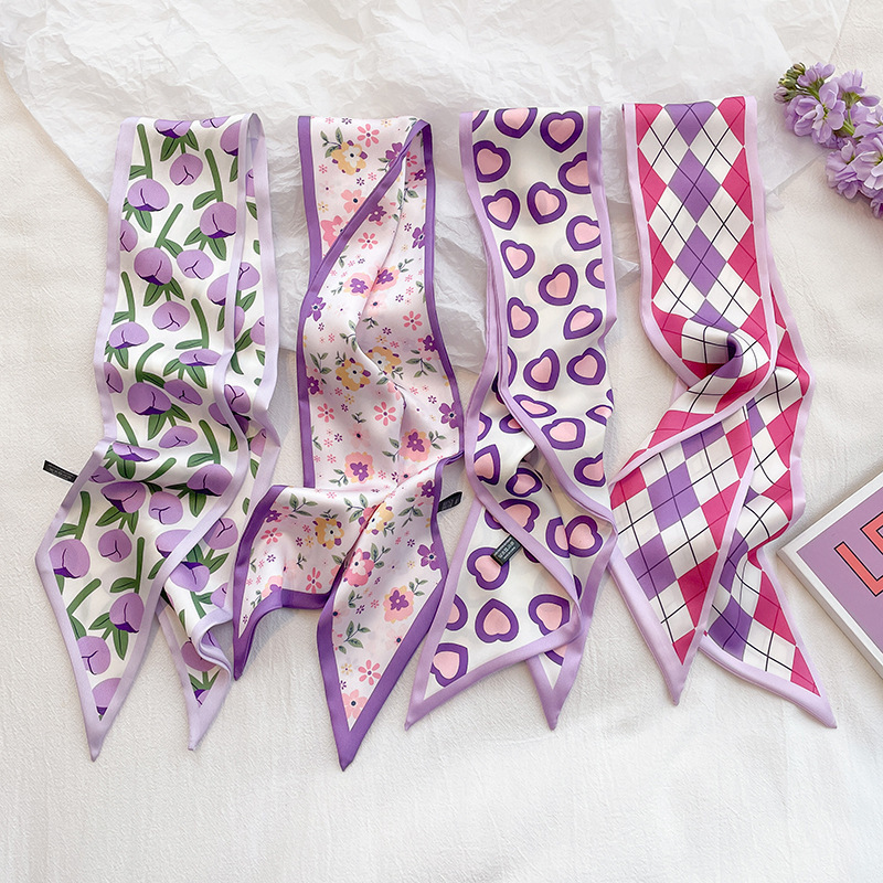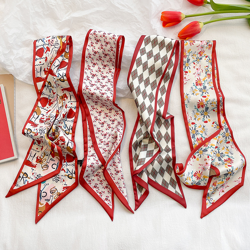 彩色系温柔感日常搭配小丝巾女发带扎发细窄飘带绑包春夏韩版发带