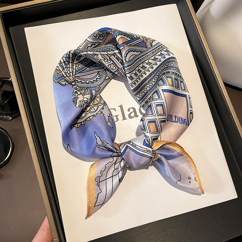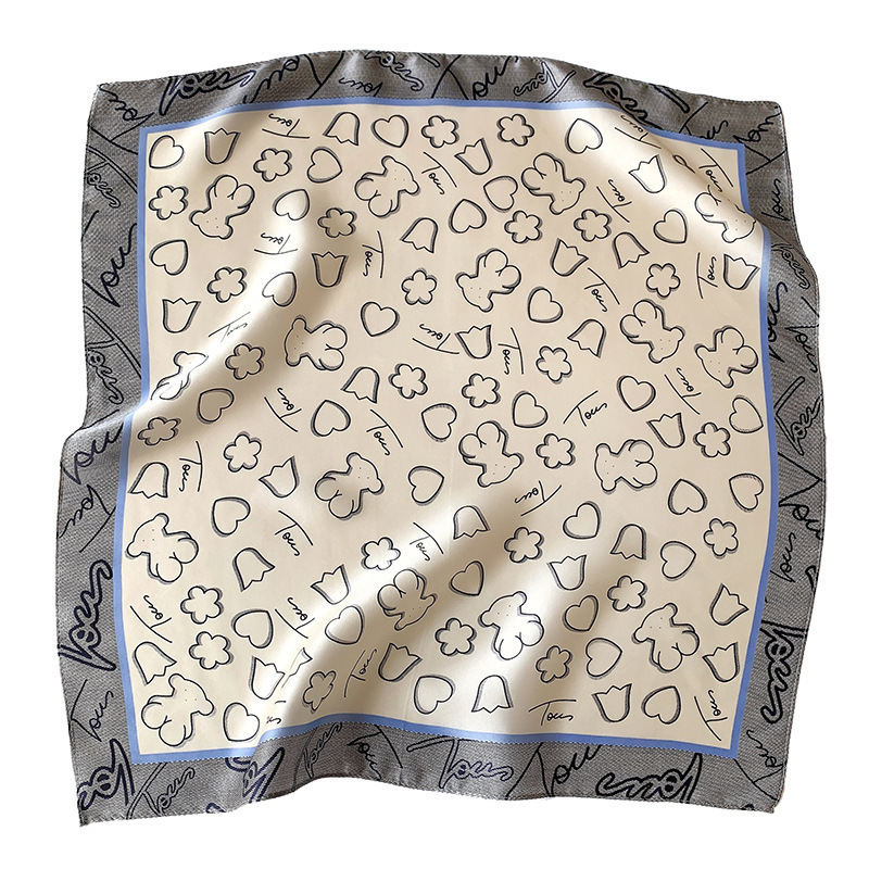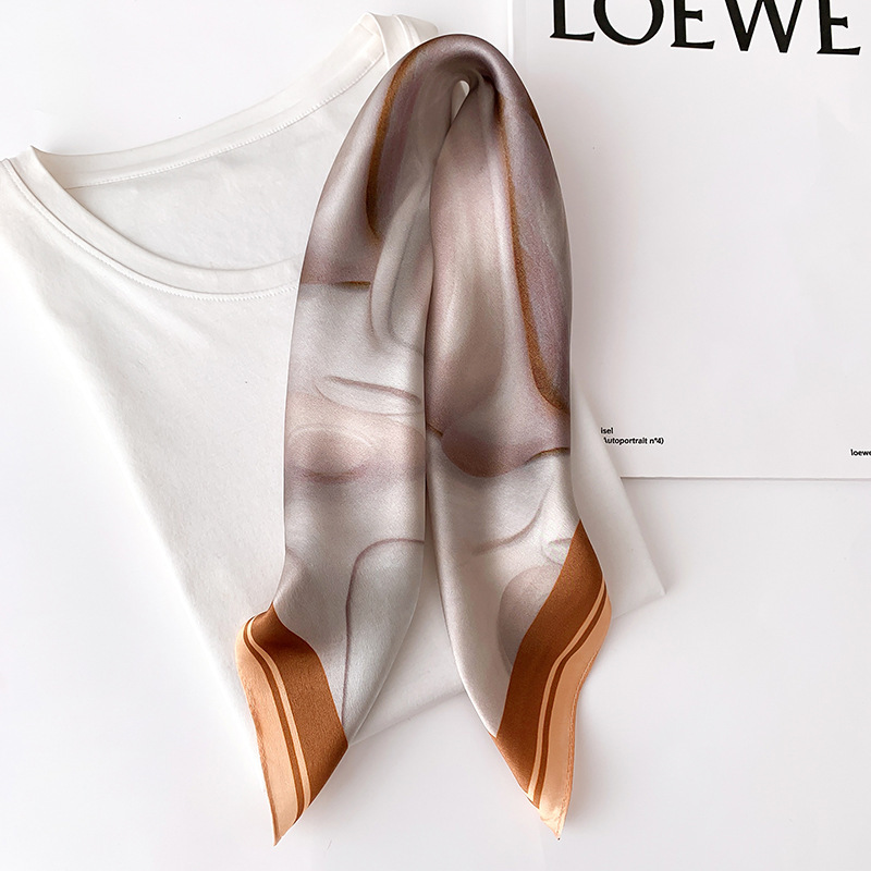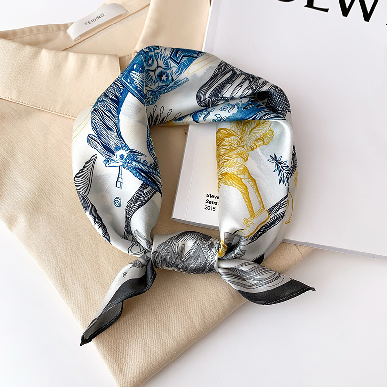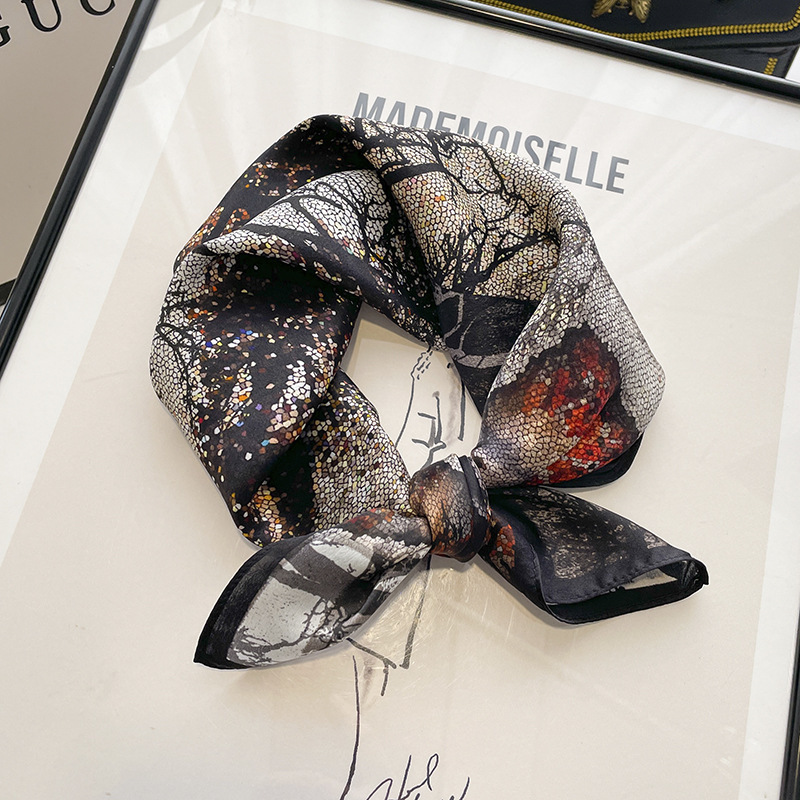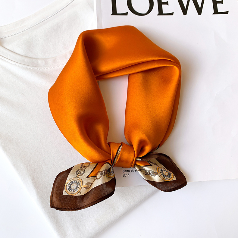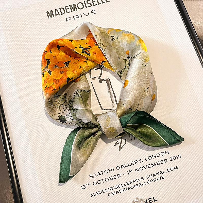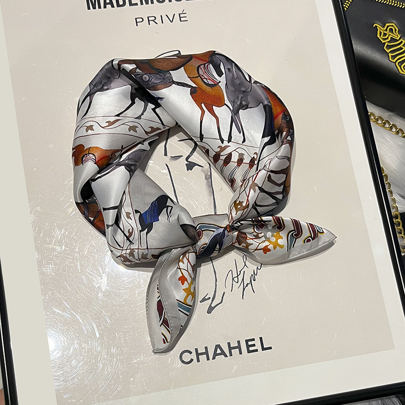 2024新款真丝丝巾女春夏时尚印花100%桑蚕丝小方巾韩国飘带领巾