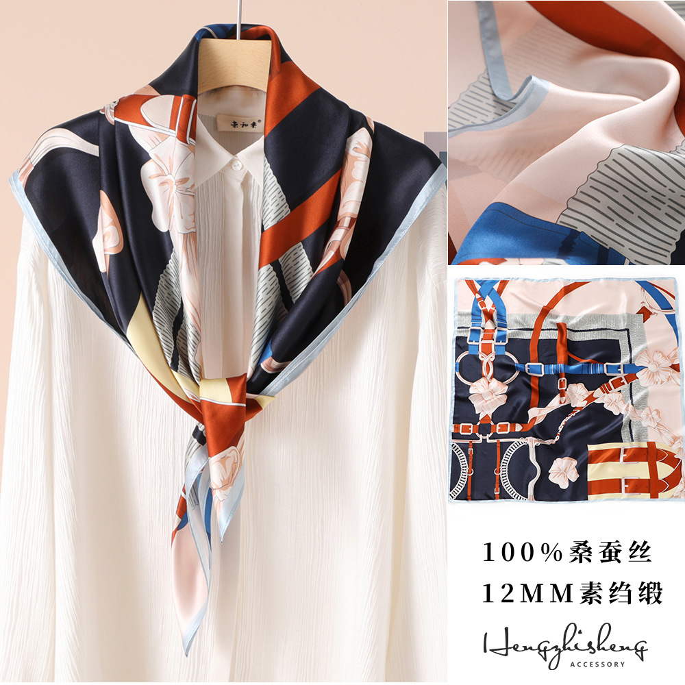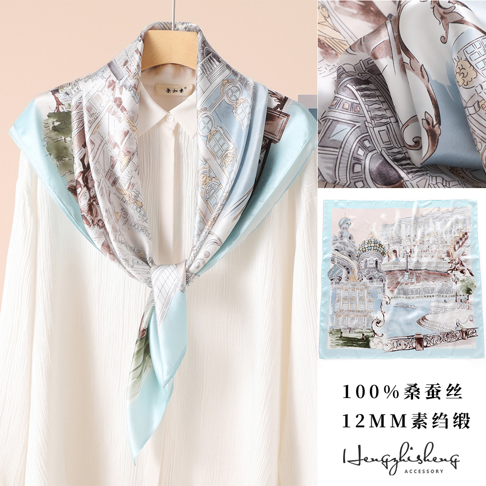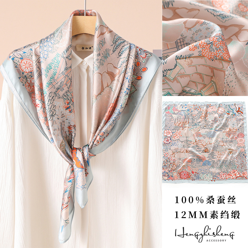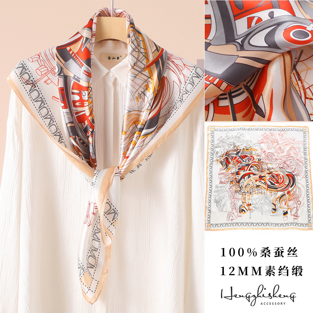 高级感真丝丝巾90春秋女士大方巾防晒新款素绉缎桑蚕丝高档伴手礼