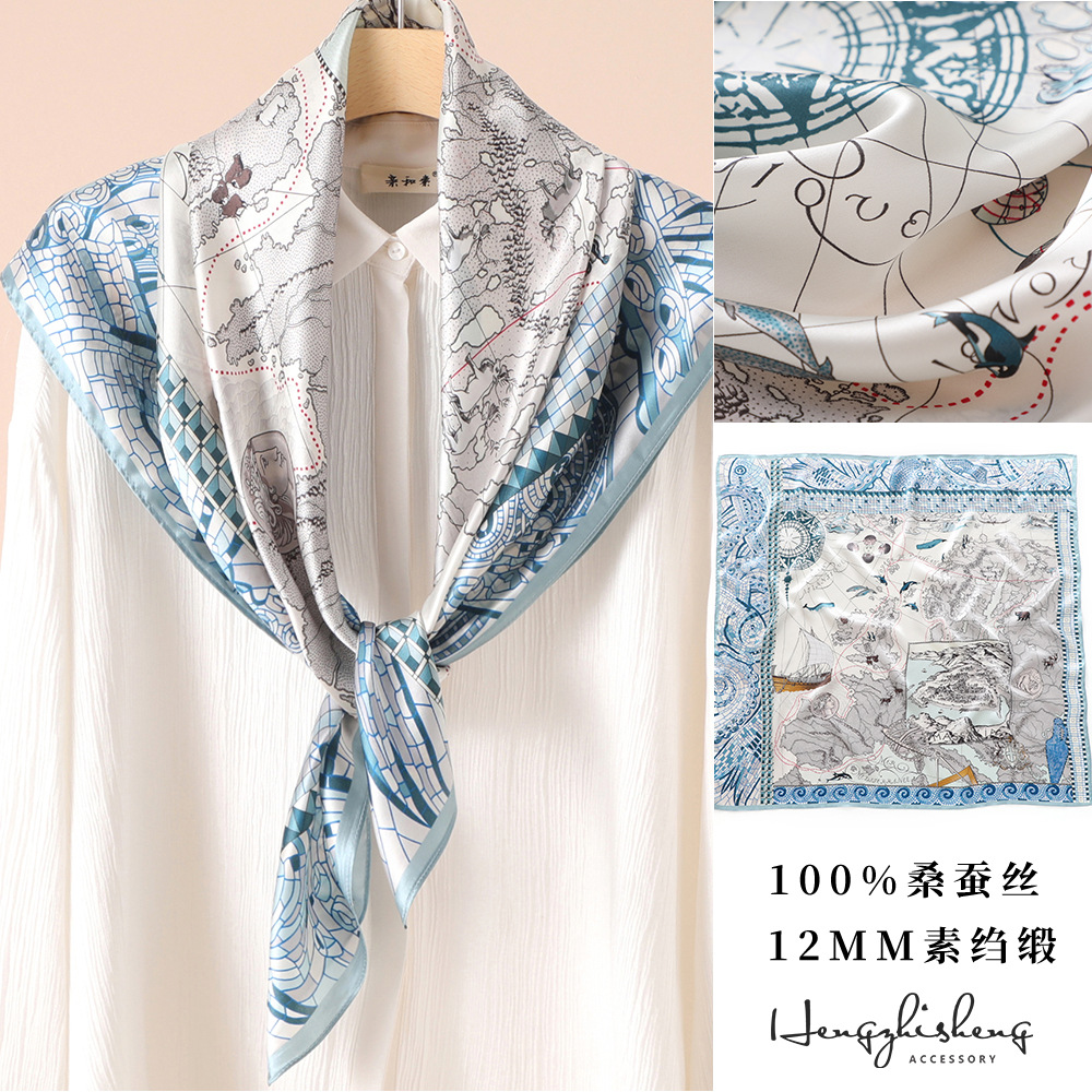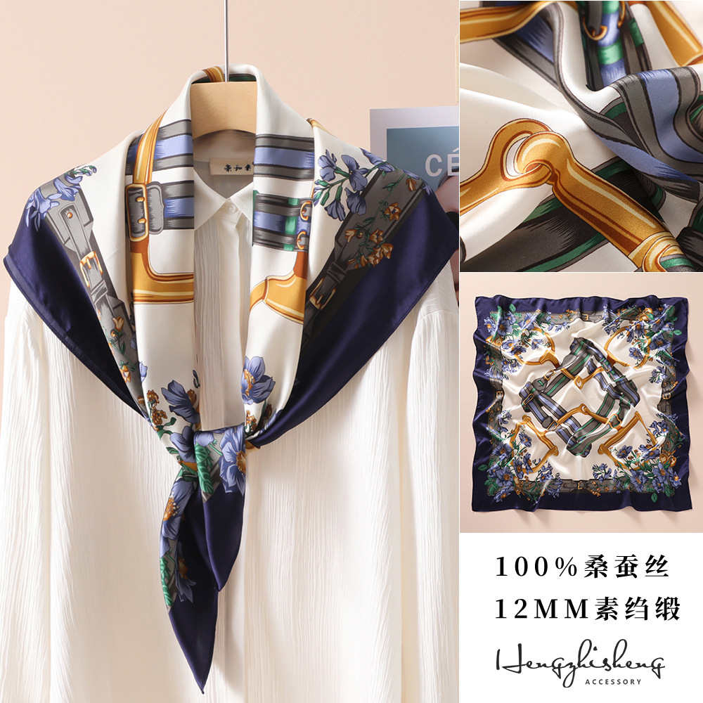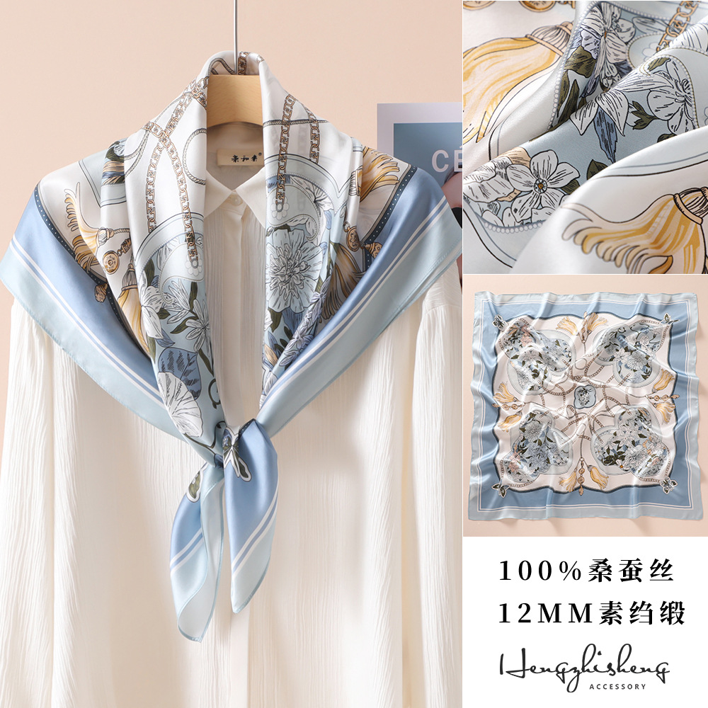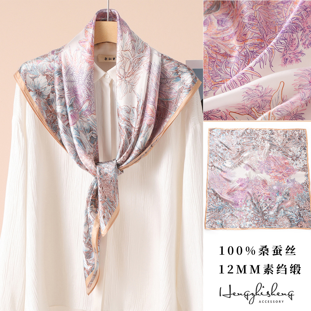 高级感真丝丝巾90春秋女士大方巾防晒新款素绉缎桑蚕丝高档伴手礼