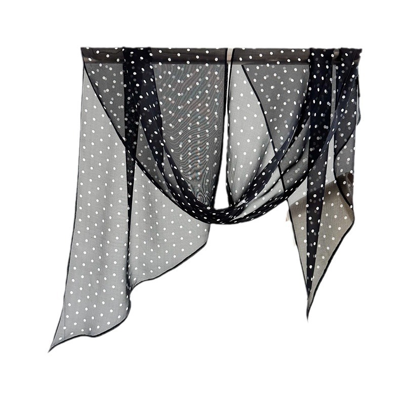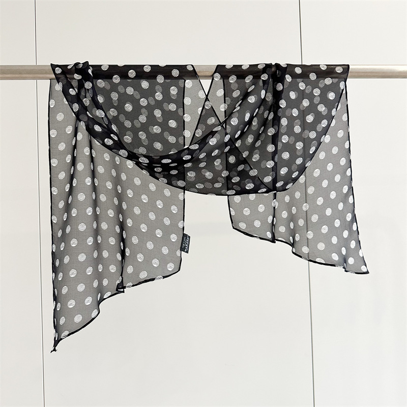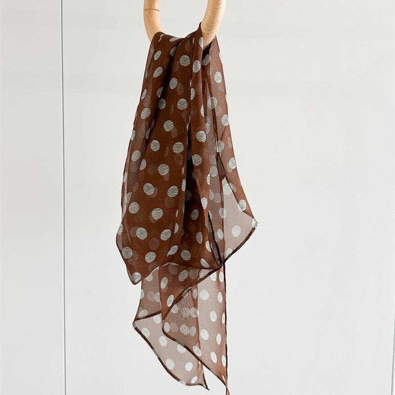 法式赫本风桑蚕丝夏季度假乔其纱复古波点斜角丝巾女洋气百搭长巾