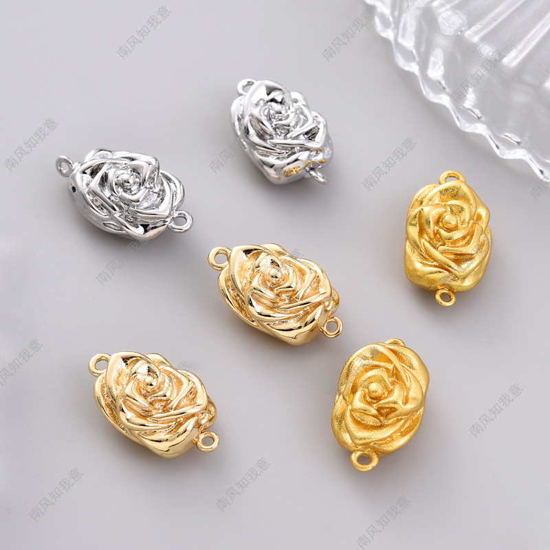 珍珠项链元宝扣沙金玫瑰花diy配件手工收尾连接手链插棒按压扣