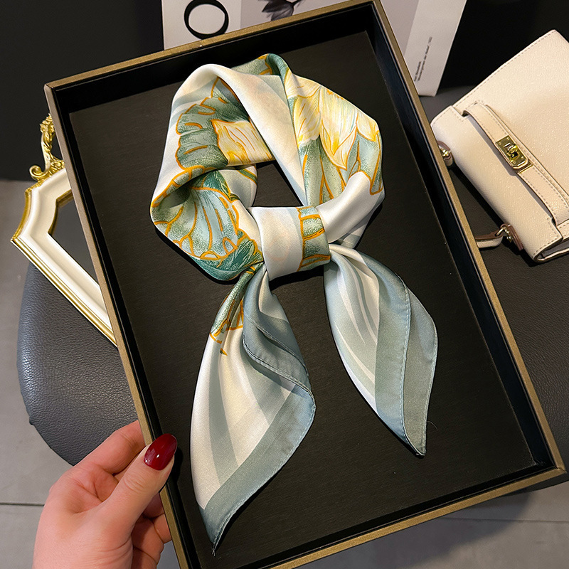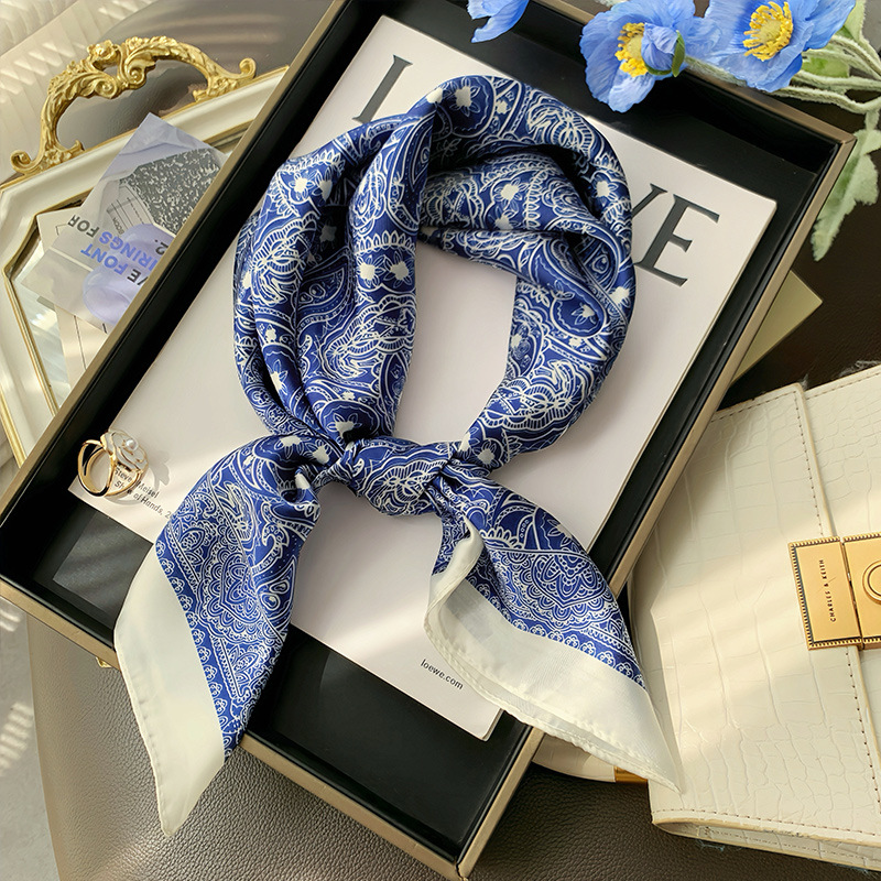 丝巾系脖高级感女2025新款小方巾搭配衬衫领巾围脖腰果时尚绑发带