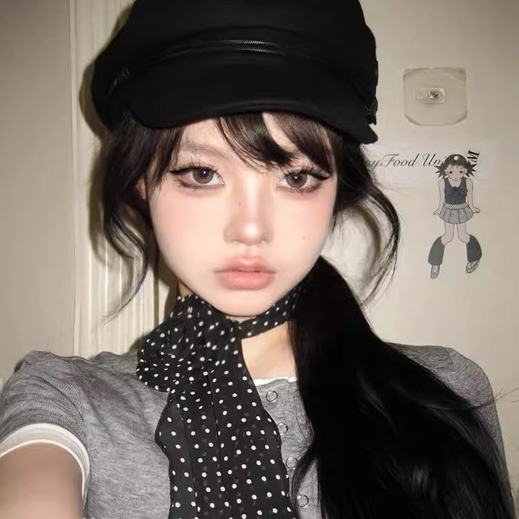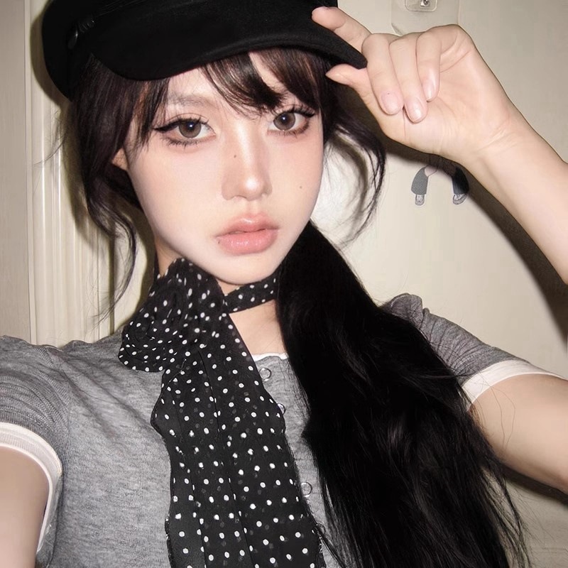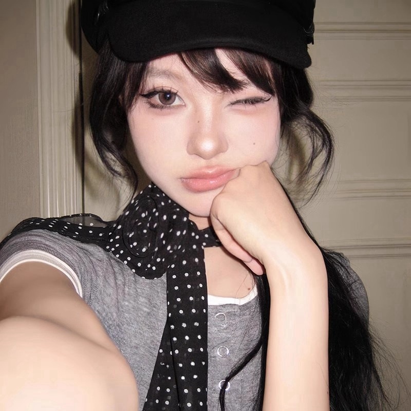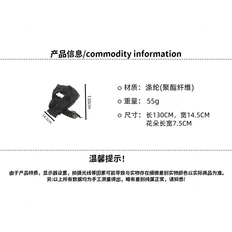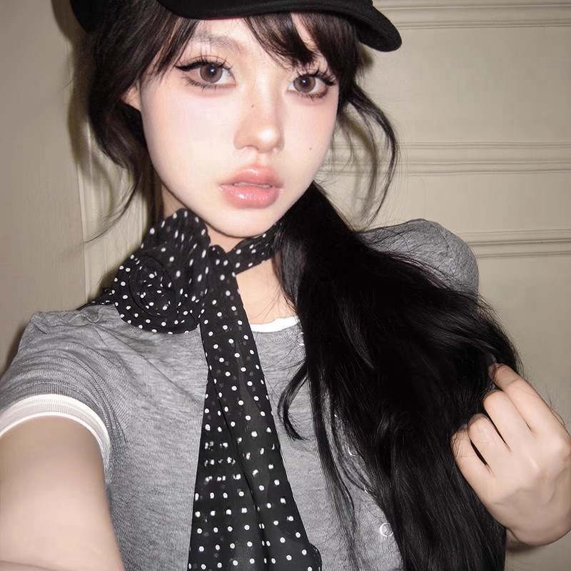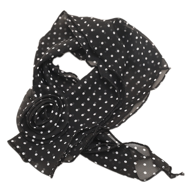 复古黑色波点玫瑰长条丝巾ins风y2k辣妹飘带文艺风百搭高级感丝带