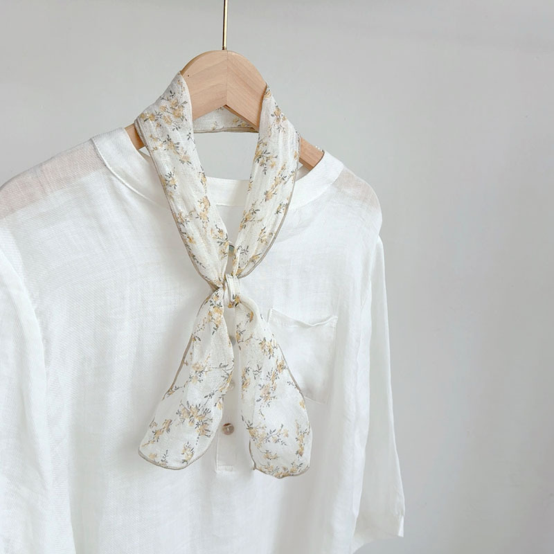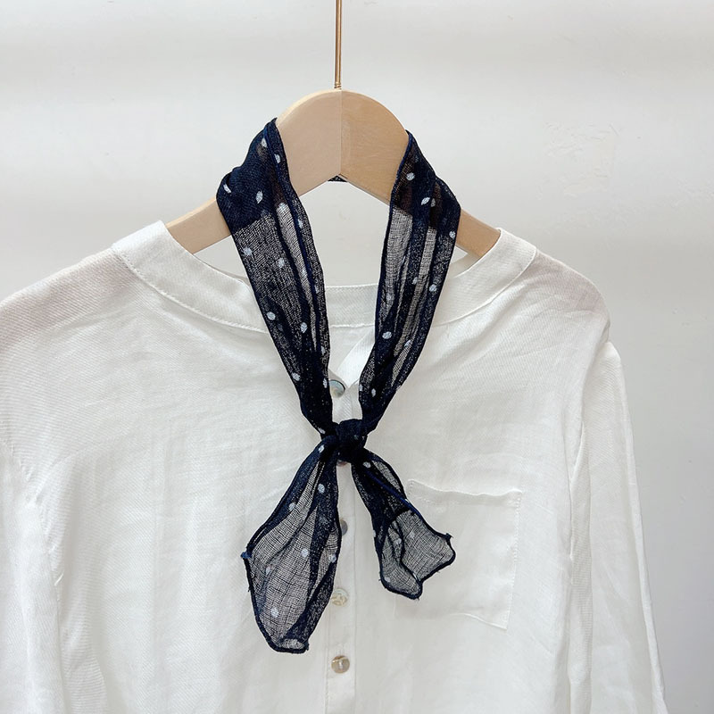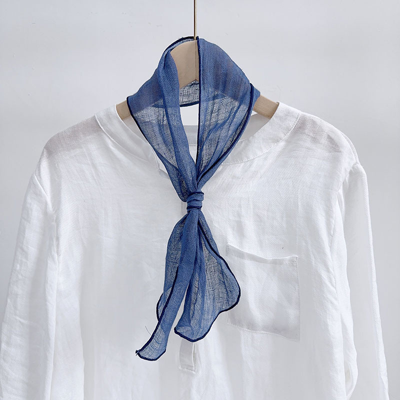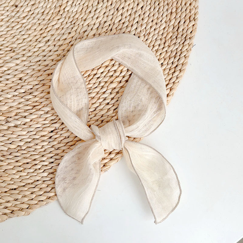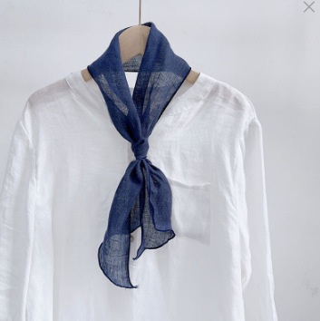 纯亚麻港风雨露原色小领巾 文艺百搭女士夏季护颈小丝巾
