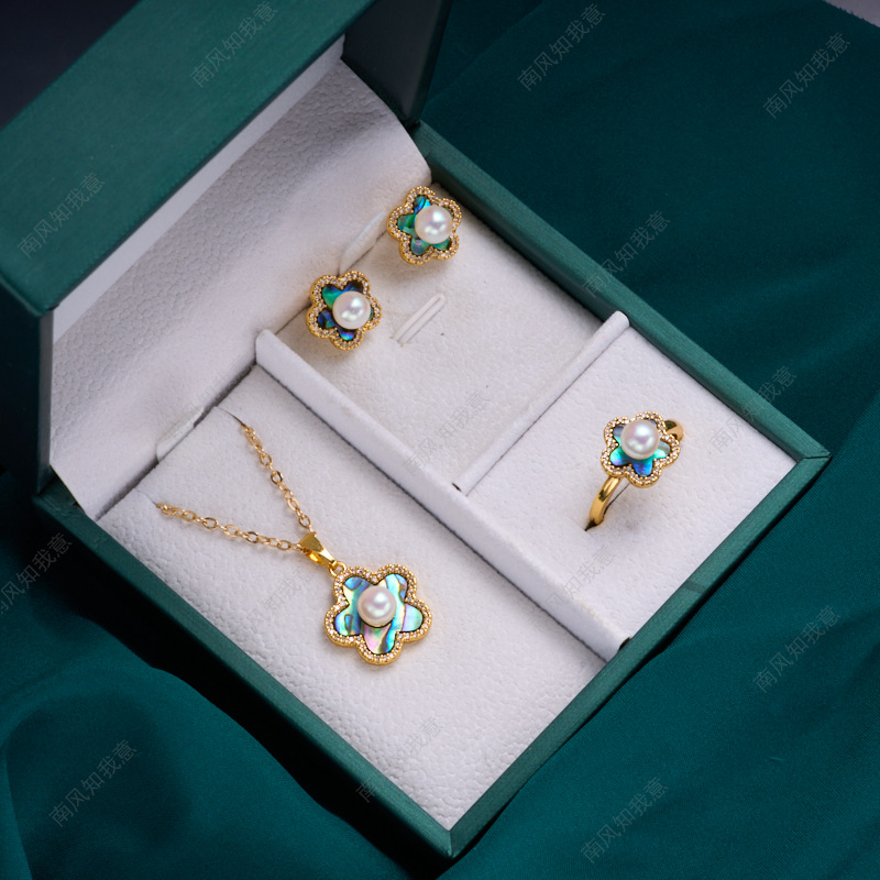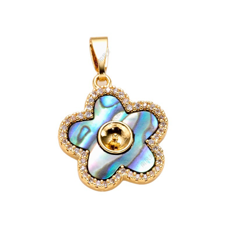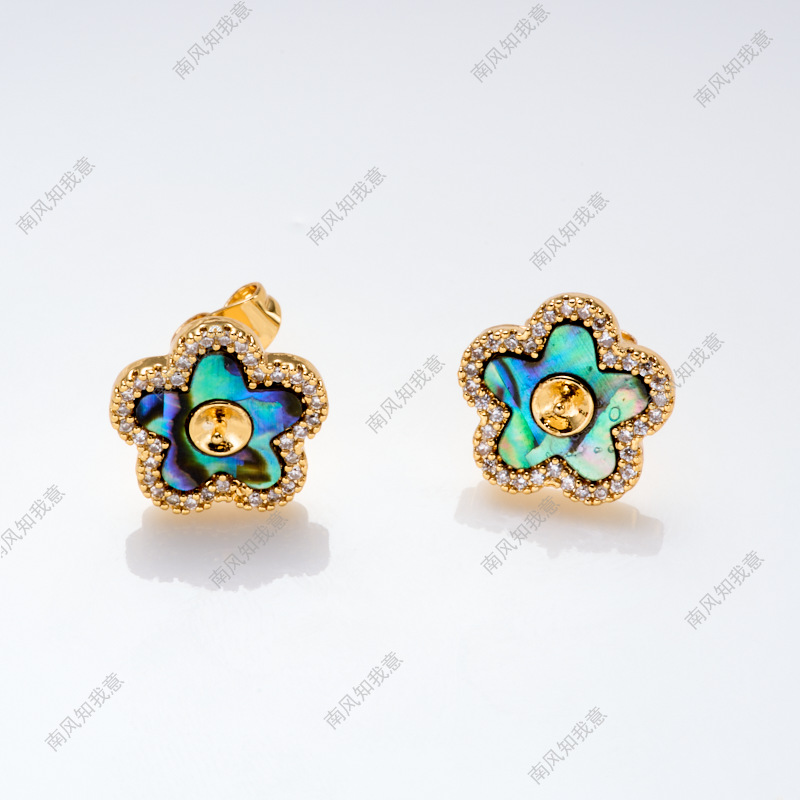 珍珠戒指耳针吊坠微镶三件套空托五瓣花炫彩鲍鱼贝DIY轻奢高级感