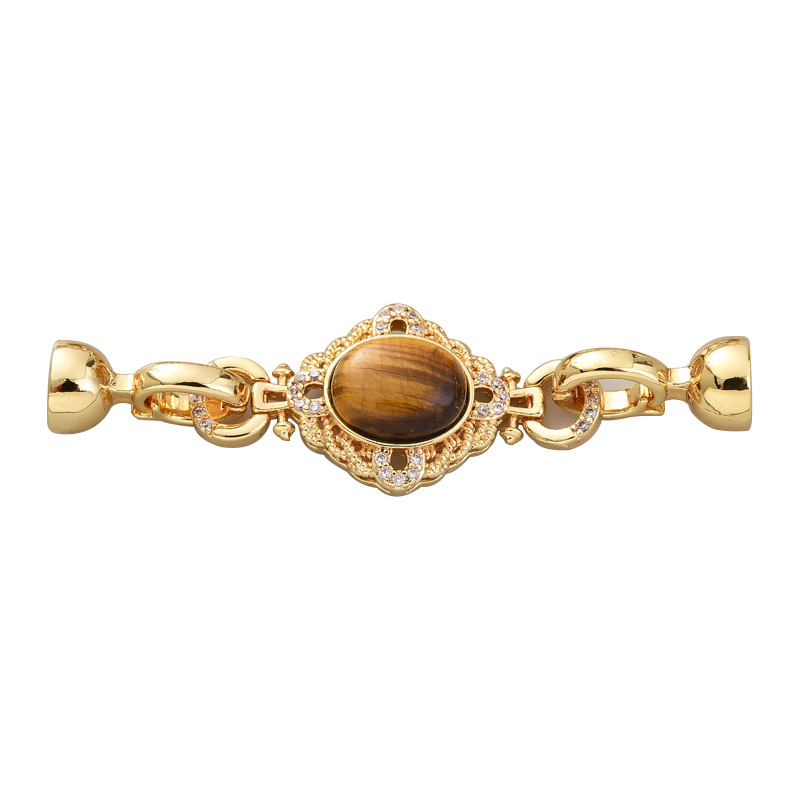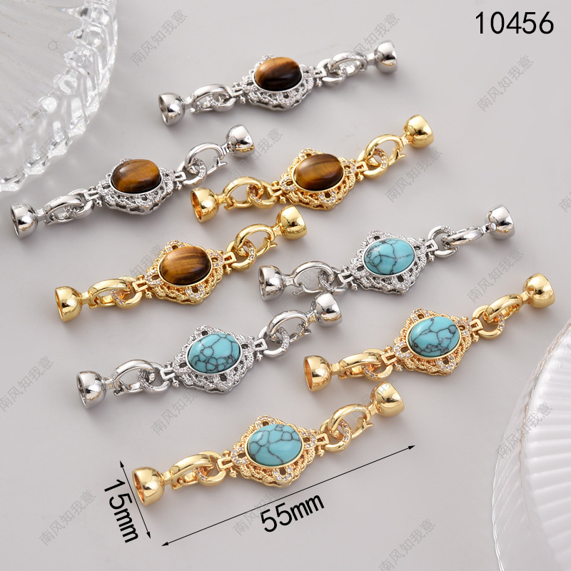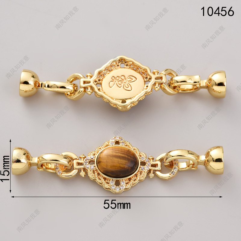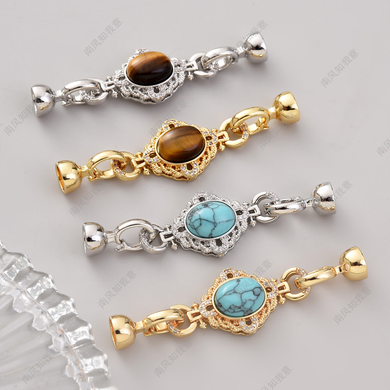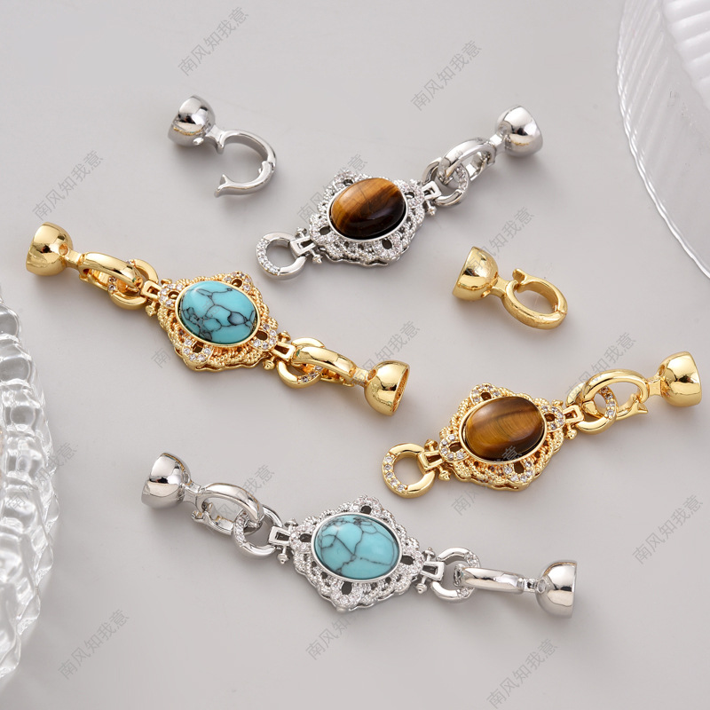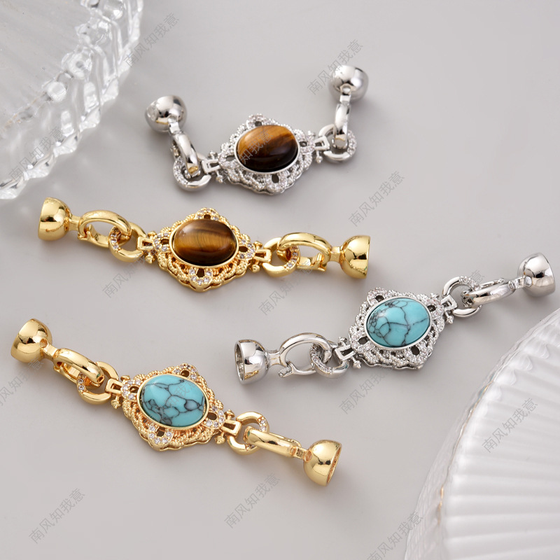 珍珠项链扣天然虎眼石复古手工收尾扣连接扣子母扣毛衣链diy配件