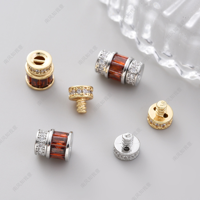 珍珠项链扣红锆石旋转扭扭球圆柱形纽扣手链连接扣搭扣diy配件