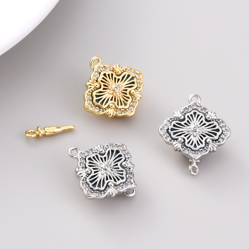珍珠项链扣滴油微镶元宝扣按压扣连接扣毛衣链diy饰品配件插棒扣