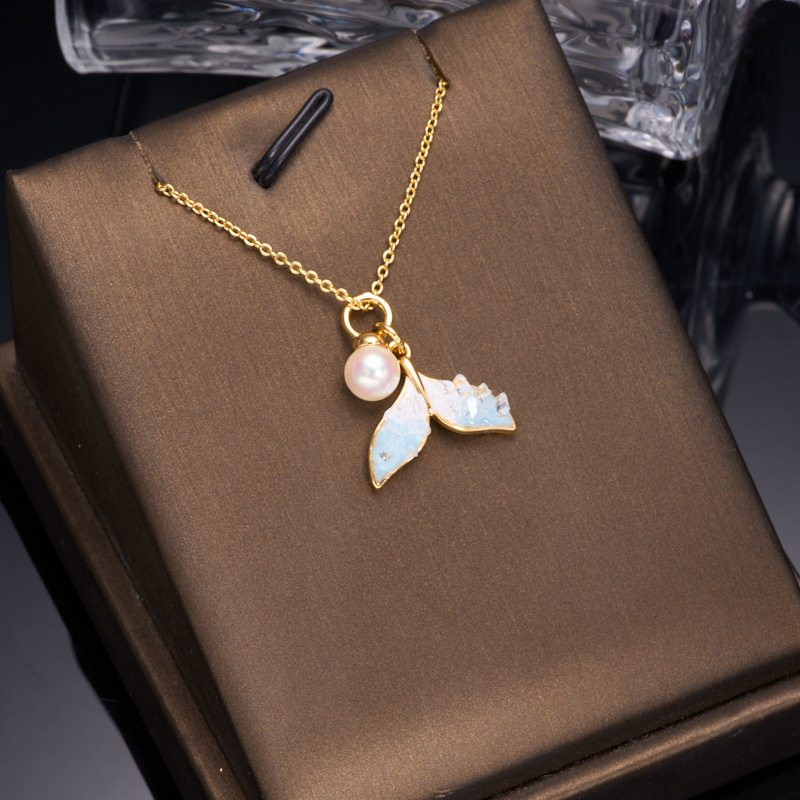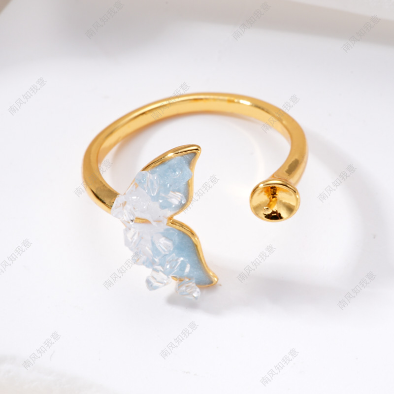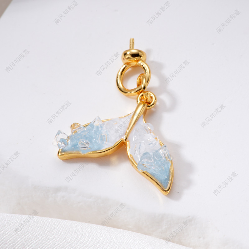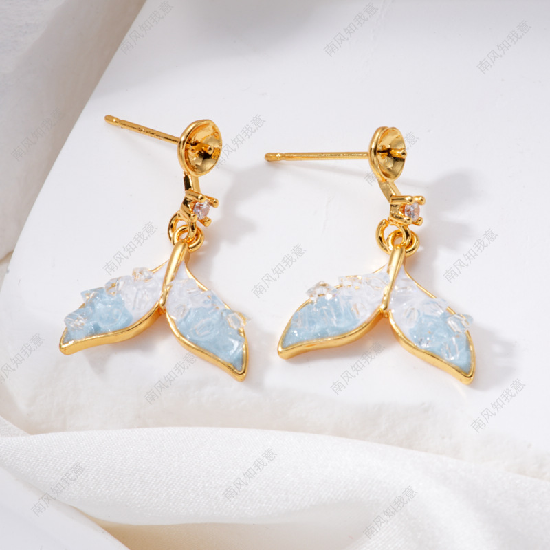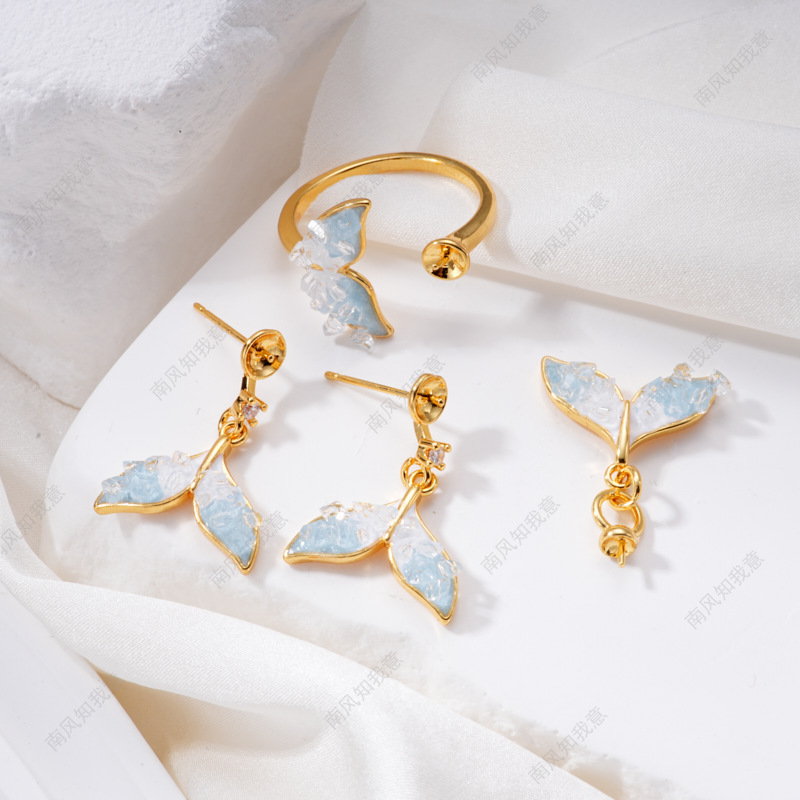 珍珠戒指耳针吊坠三件套空托人鱼尾滴油水晶高级感DIY轻奢高级感