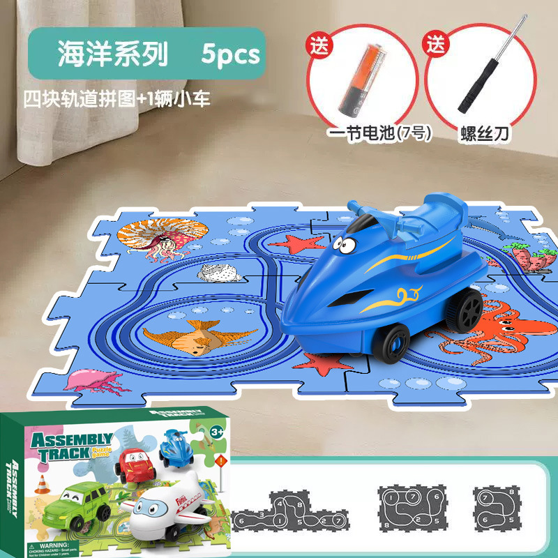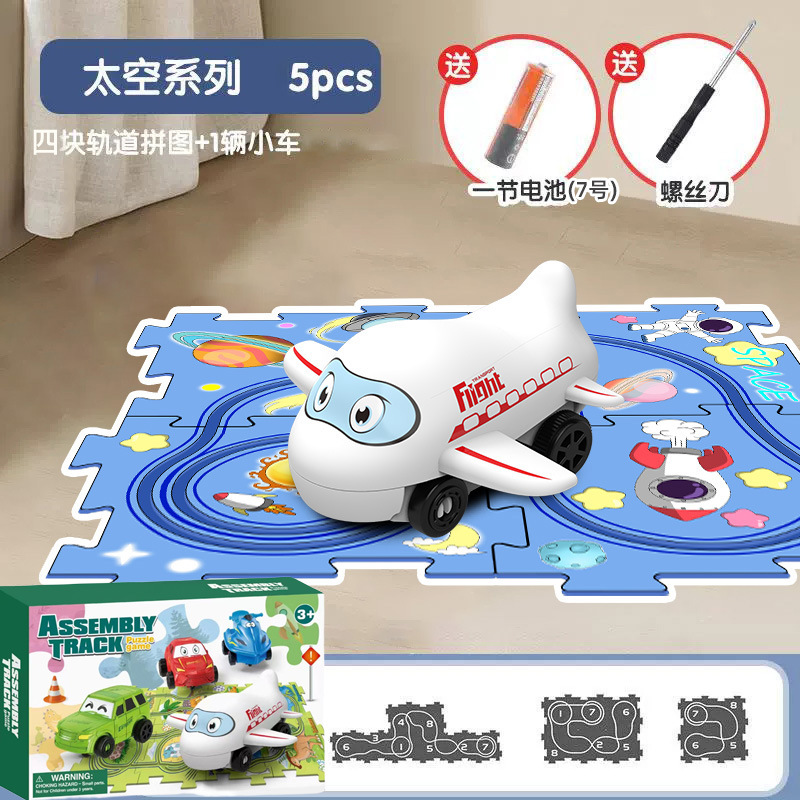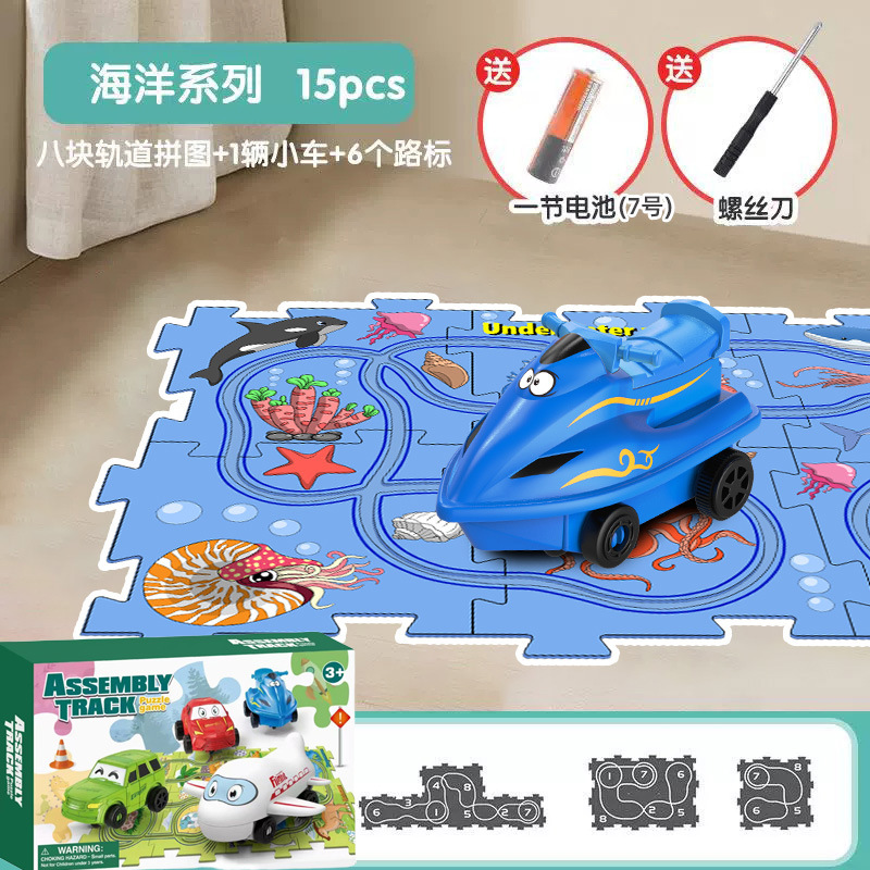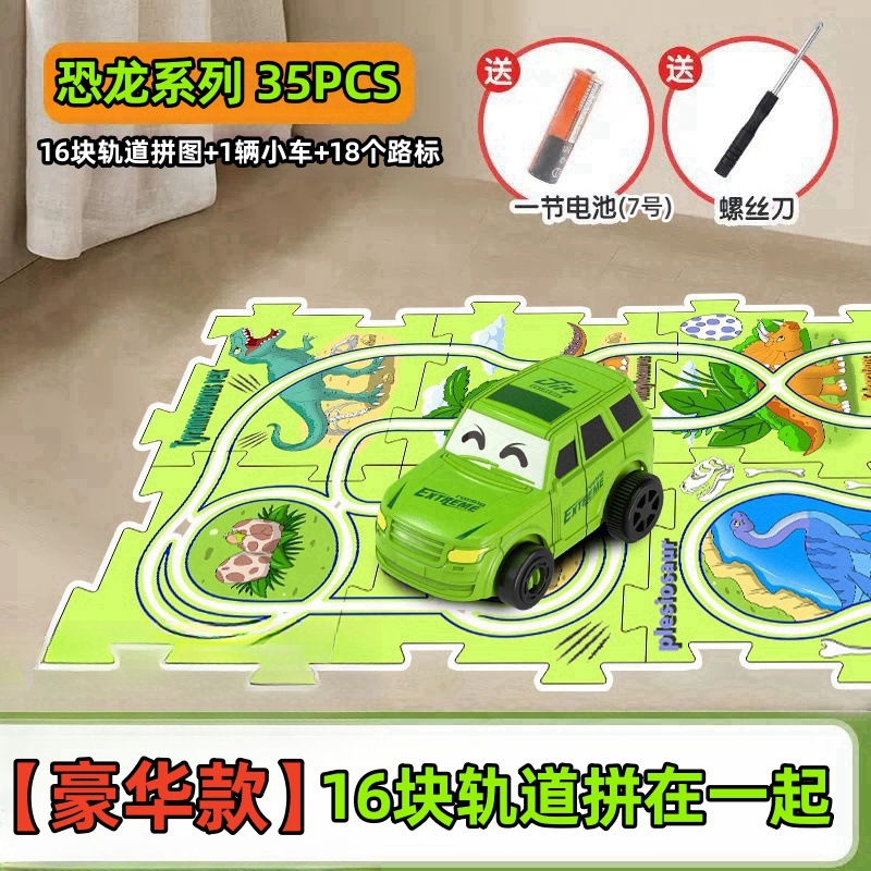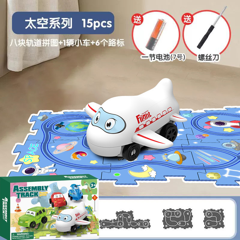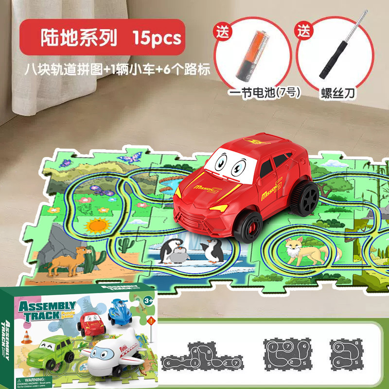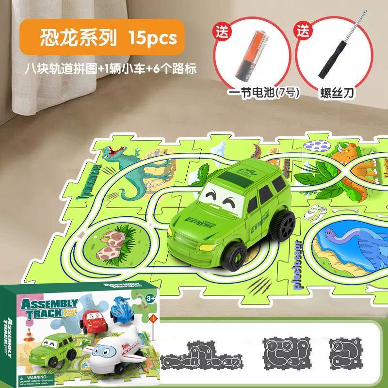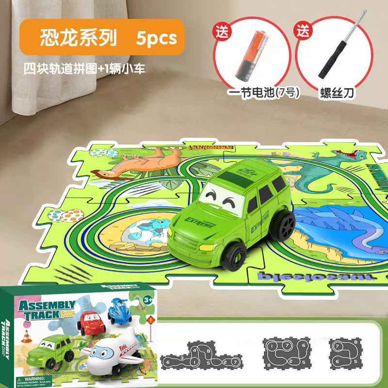 彩盒装儿童益智轨道汽车DIY拼图轨道车电动滑行小火车3岁宝宝2男
