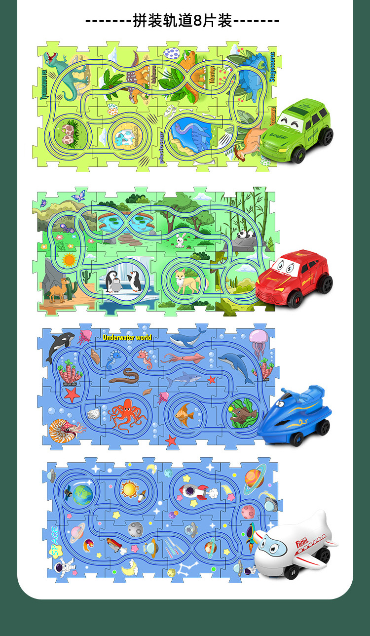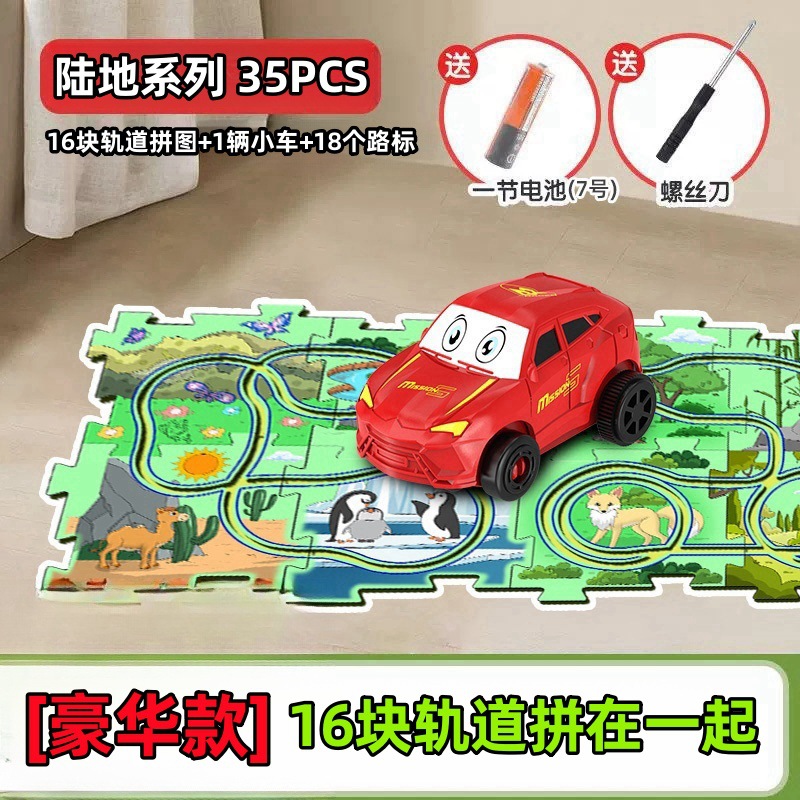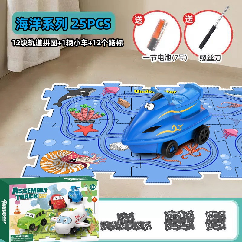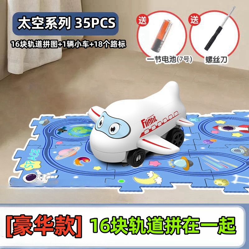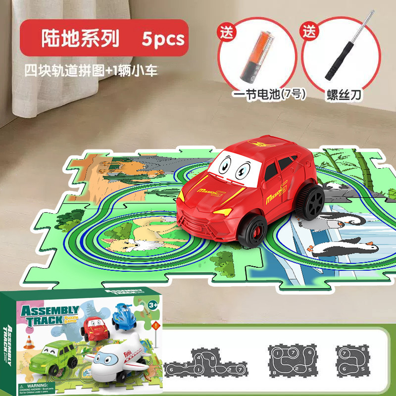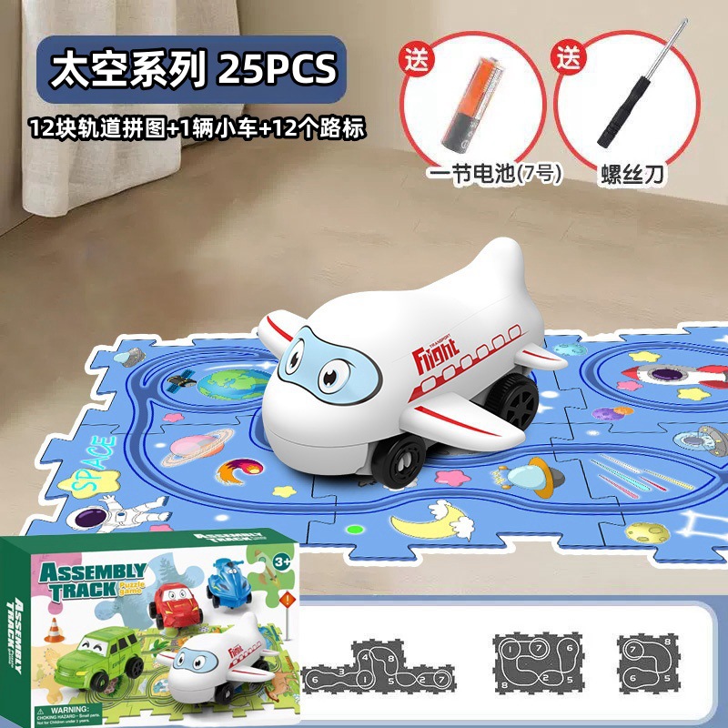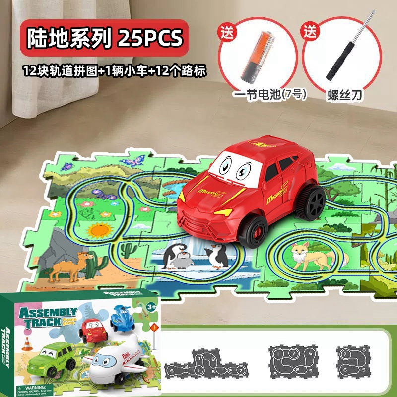 彩盒装儿童益智轨道汽车DIY拼图轨道车电动滑行小火车3岁宝宝2男