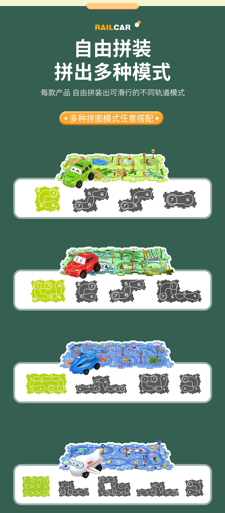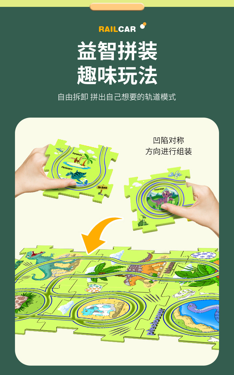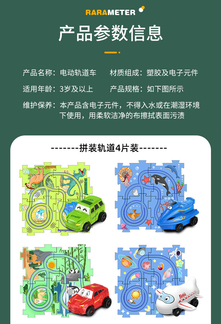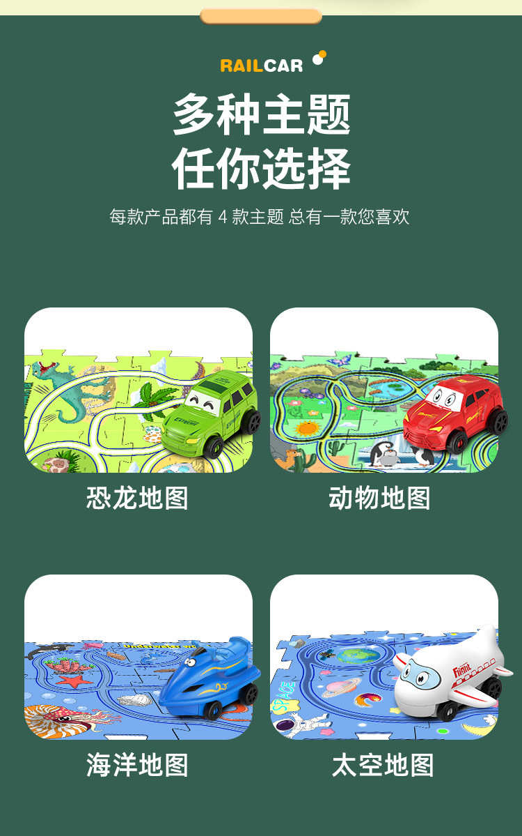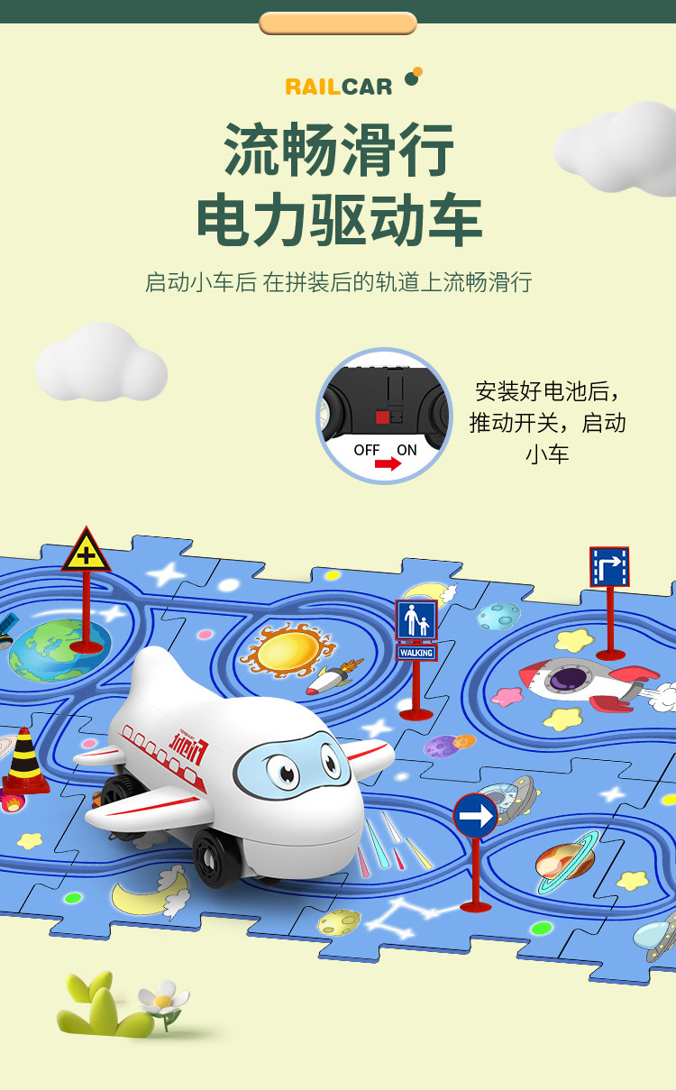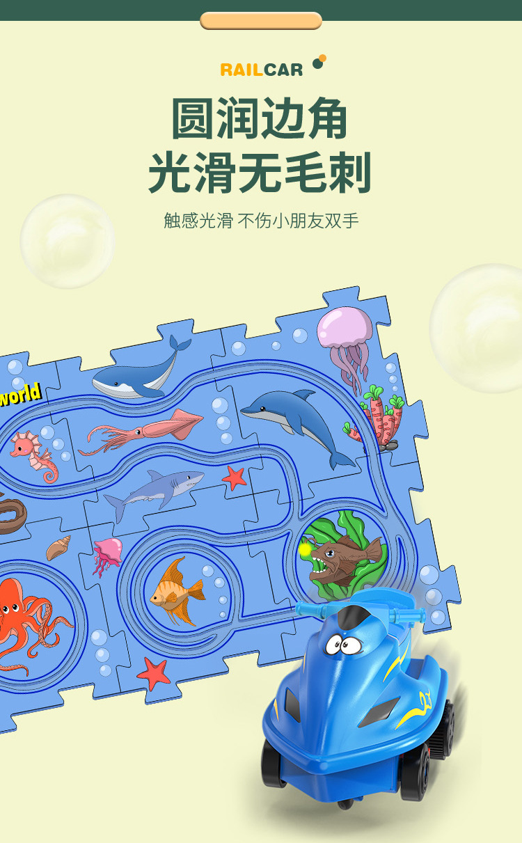 彩盒装儿童益智轨道汽车DIY拼图轨道车电动滑行小火车3岁宝宝2男