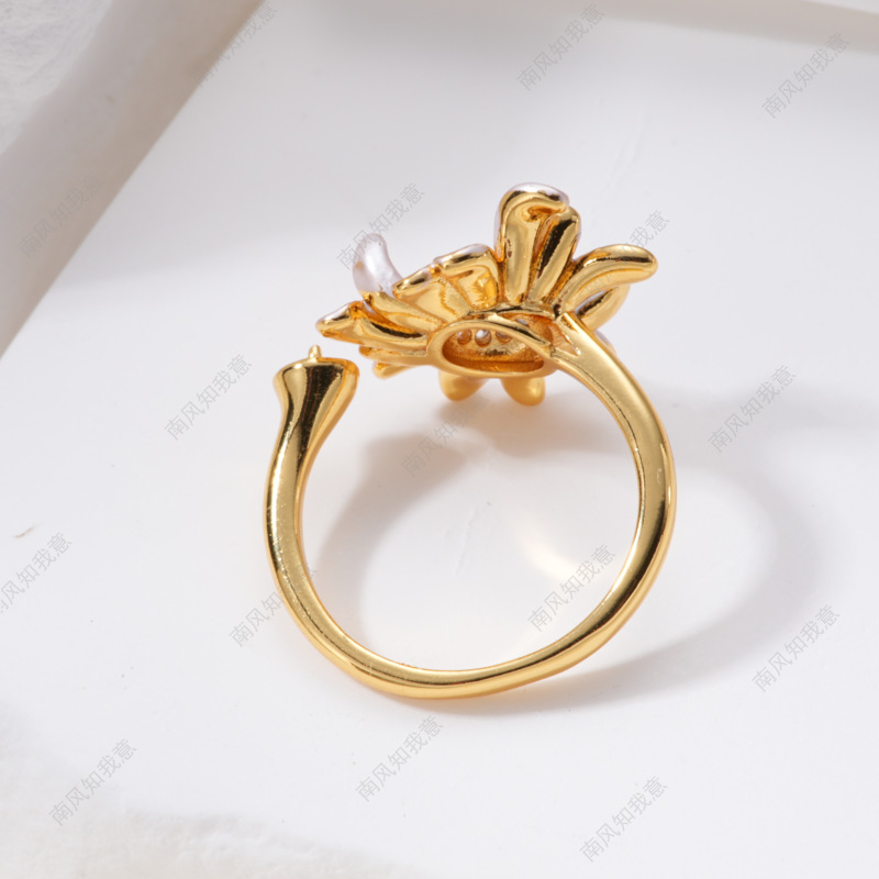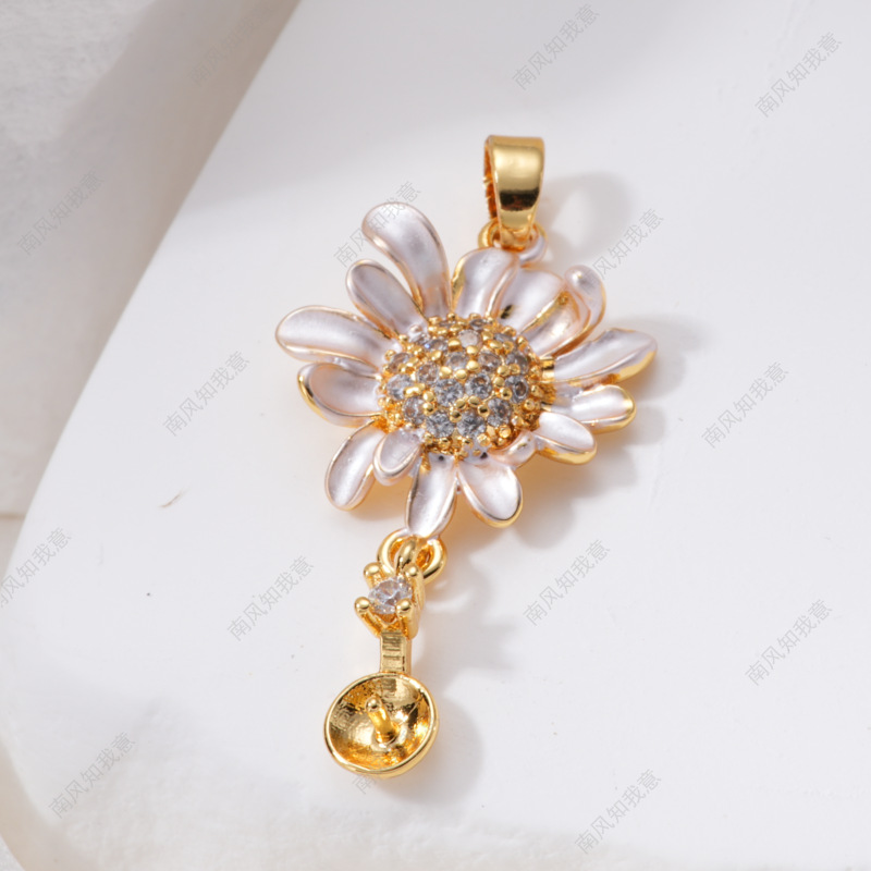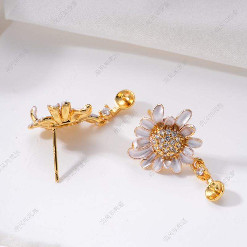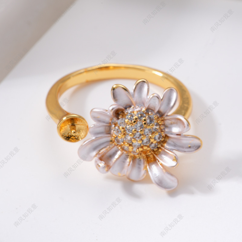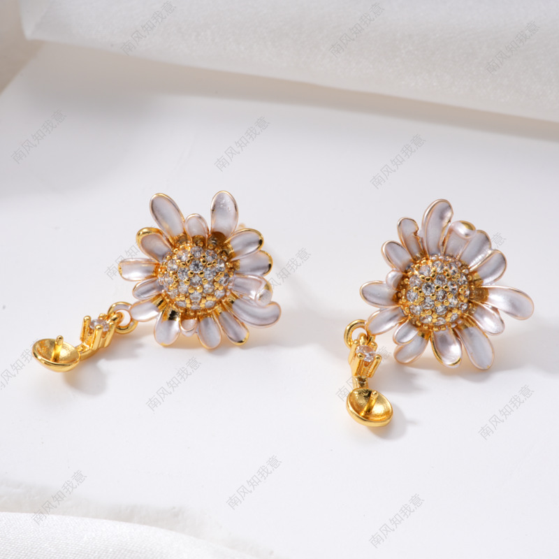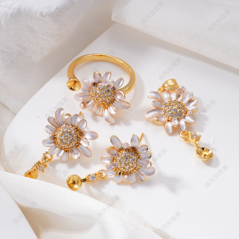 珍珠戒指耳针吊坠微镶三件套空托雏菊滴油清新设计DIY轻奢高级感