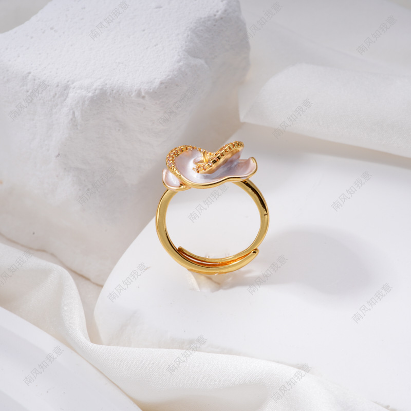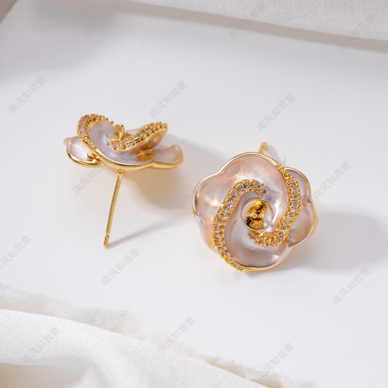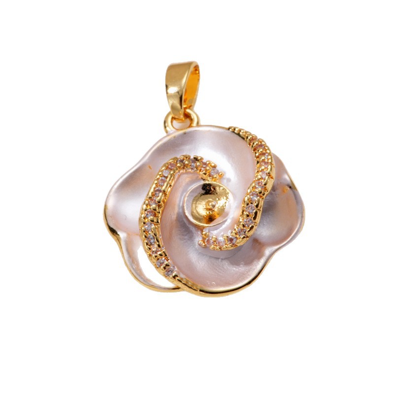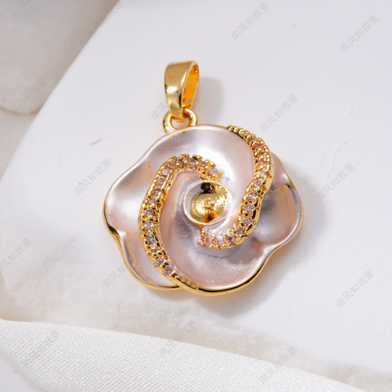 珍珠戒指耳针吊坠微镶三件套空托复古薄涂山茶花微镶DIY轻奢高级