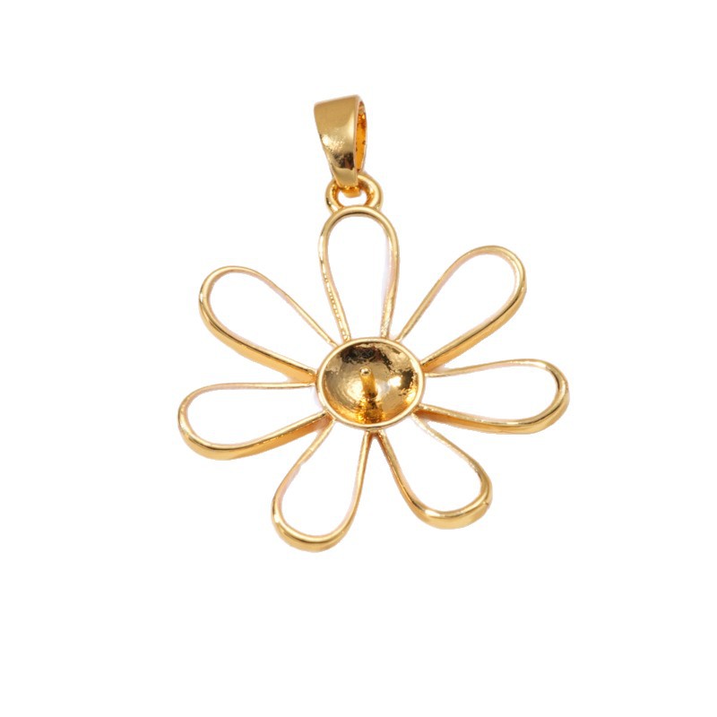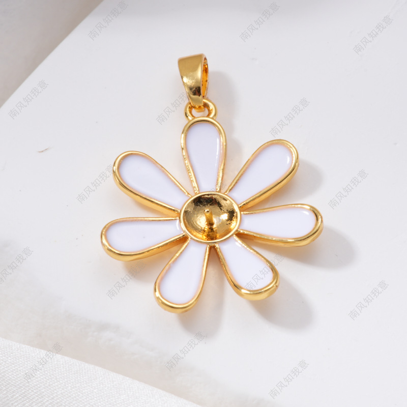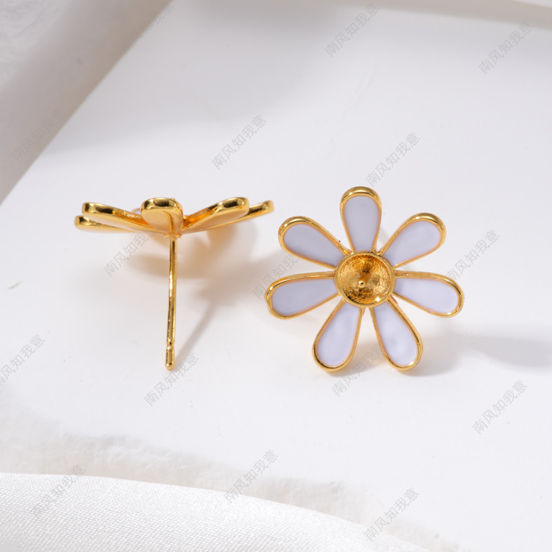 珍珠戒指耳针吊坠三件套空托雏菊滴油小清新设计款DIY轻奢高级感