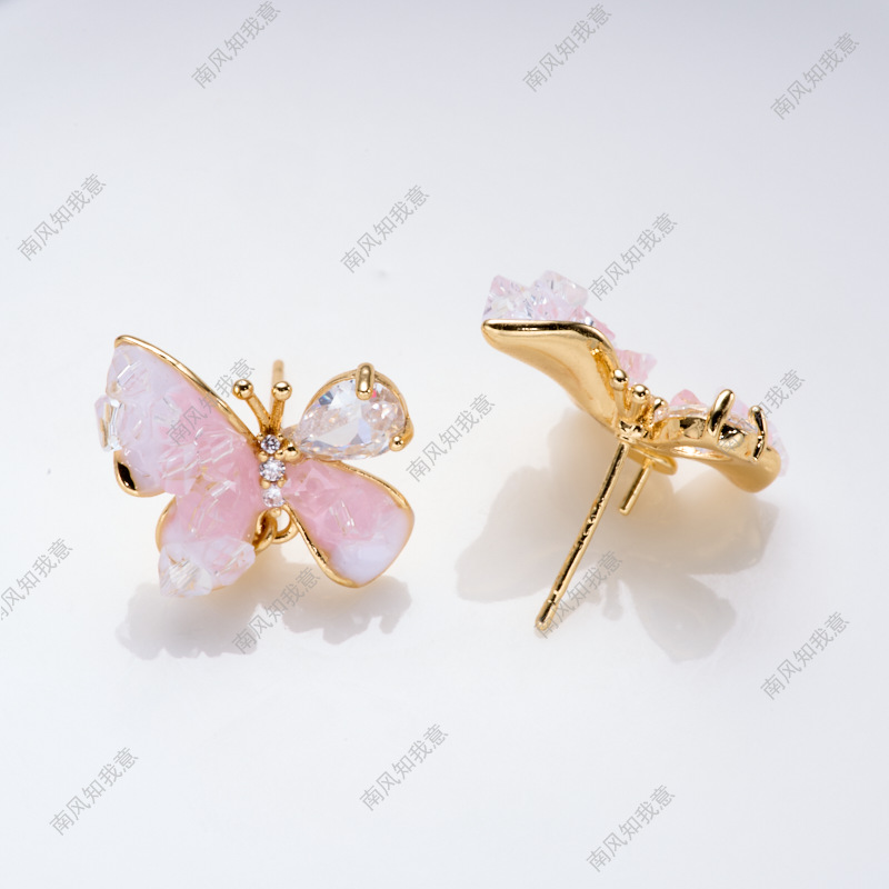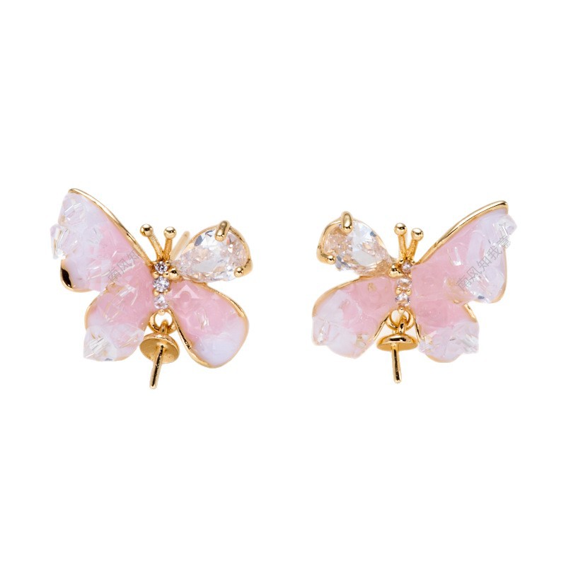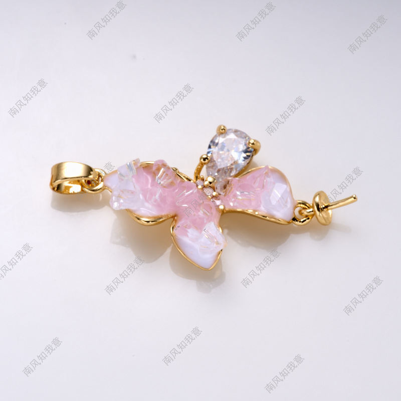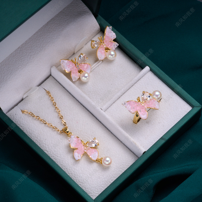 珍珠戒指耳针吊坠三件套空托蝴蝶滴油水晶小众设计高级感DIY轻奢