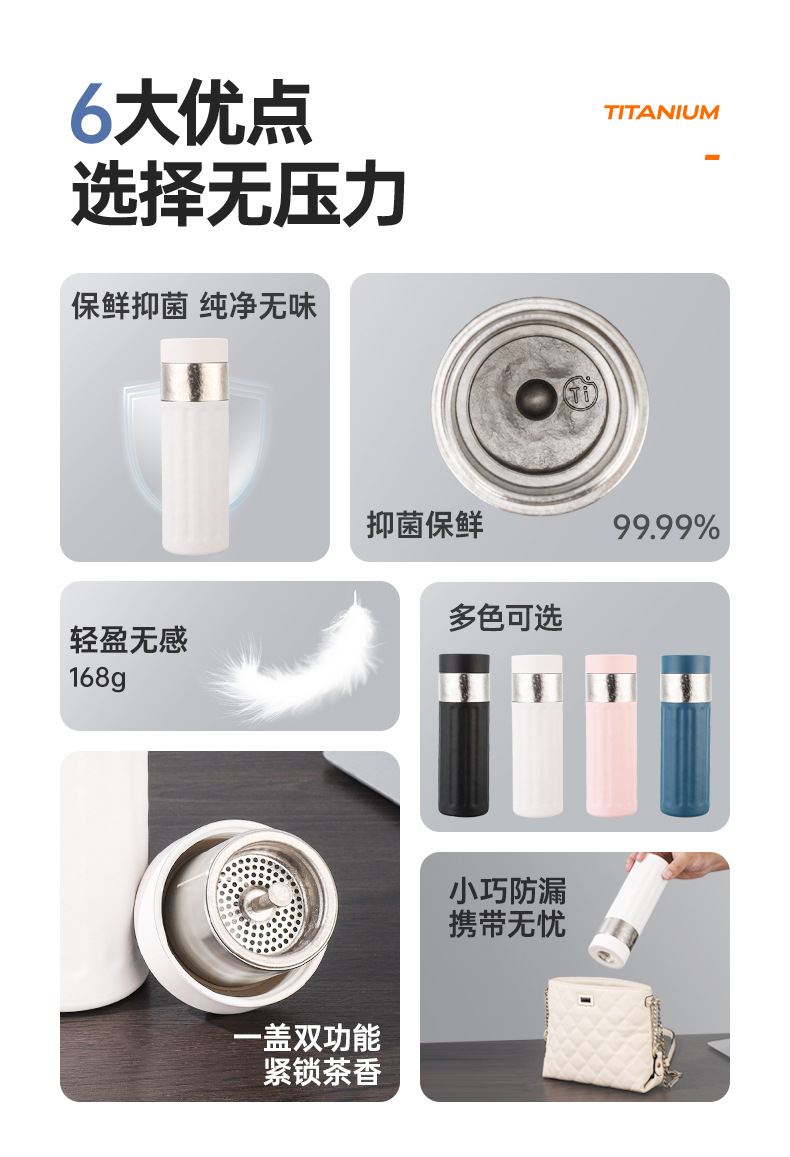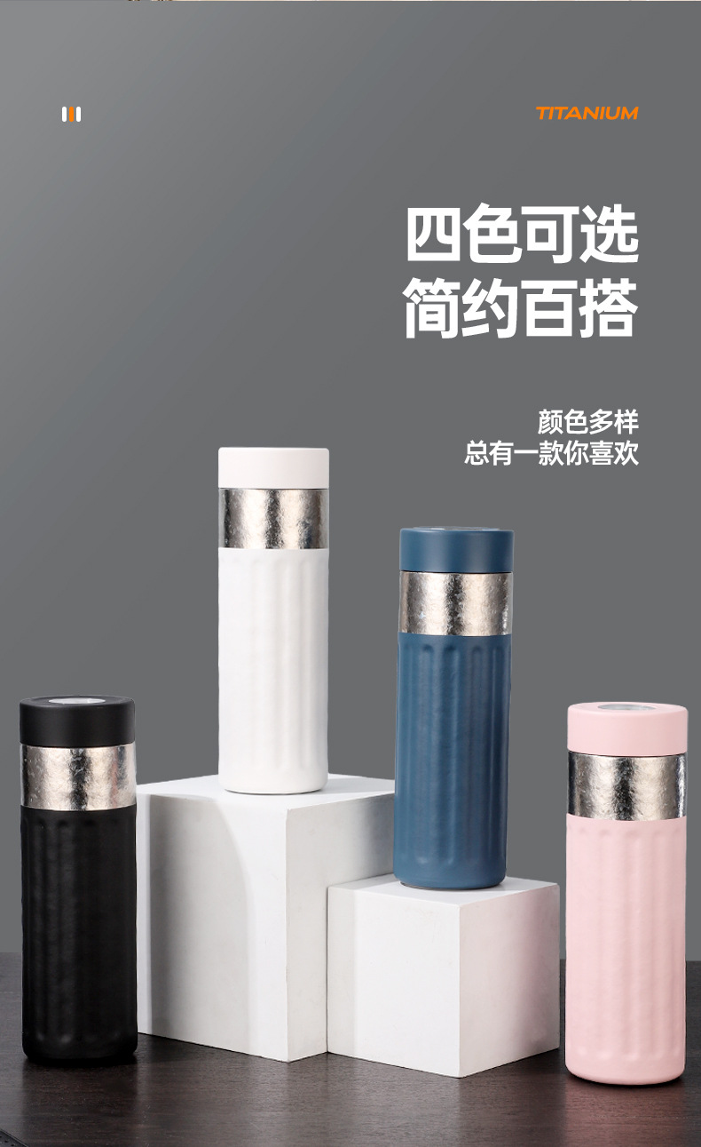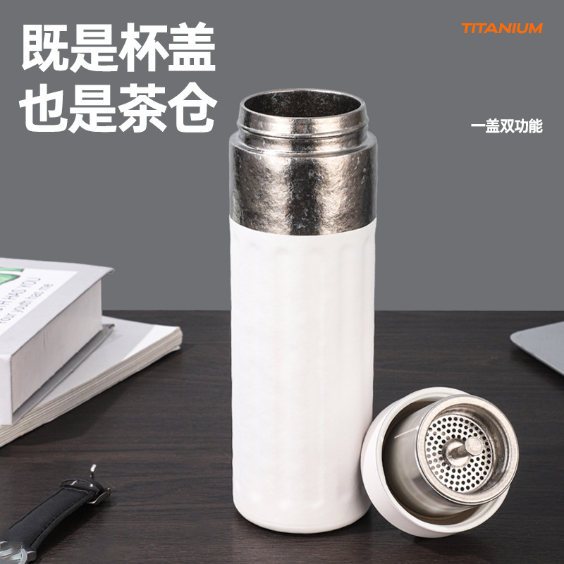 高档商务水杯纯钛茶水分离泡茶杯双层保温杯户外便携随行杯子批发