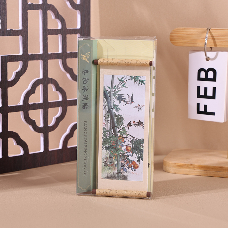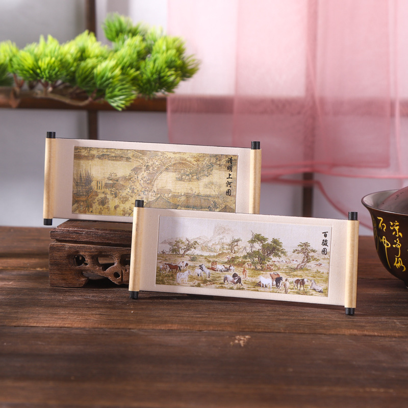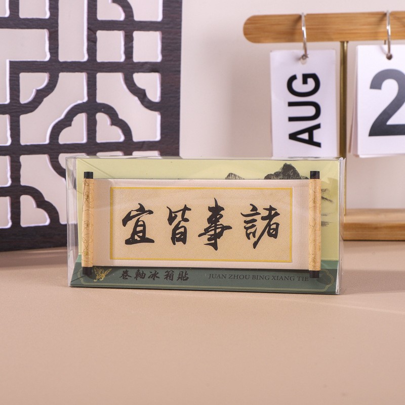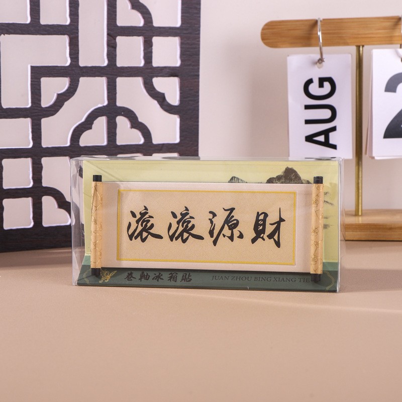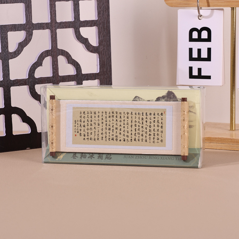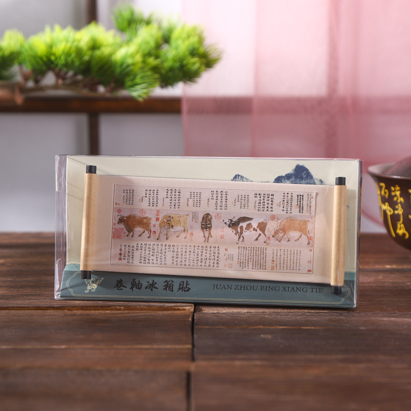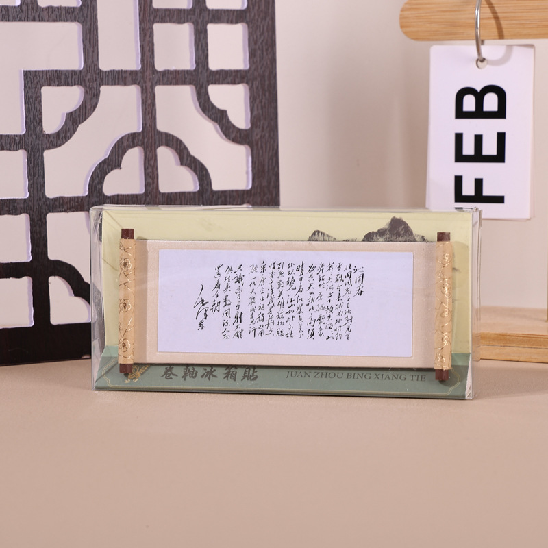 国画系列木质卷轴冰箱贴文化创意礼品木质磁性纪念品现货冰箱贴