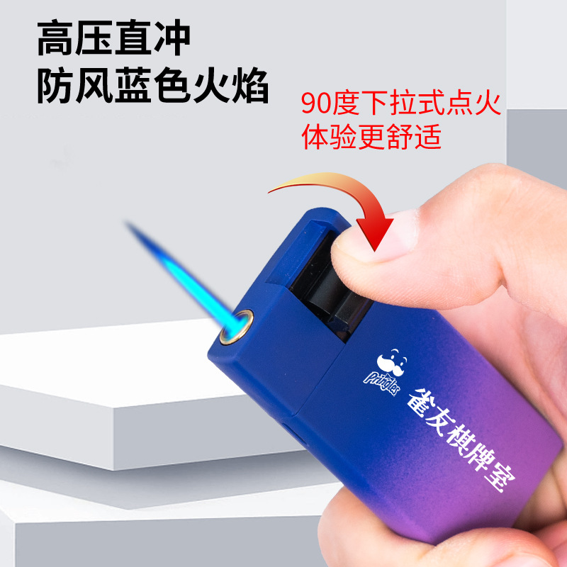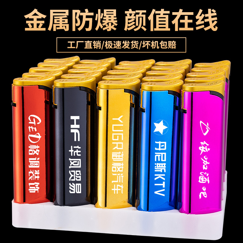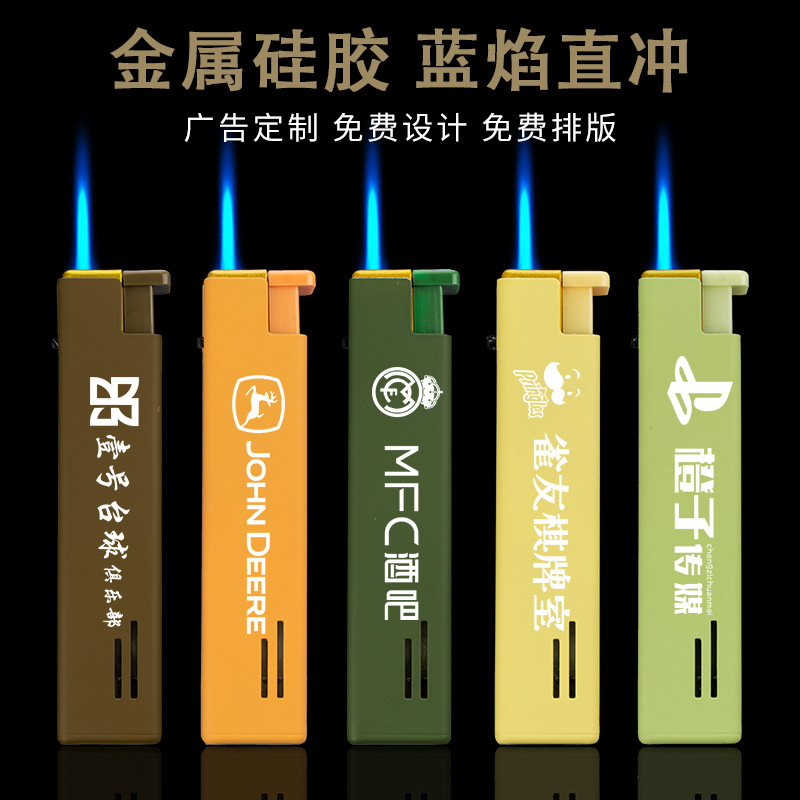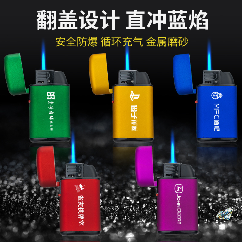 金属蓝焰直冲防风打火机定 制印字广告批发翻盖斜打创意打火机