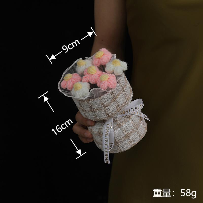 7朵小香风手工针织毛线仿真花泡芙花束闺蜜生日礼物伴手礼批发
