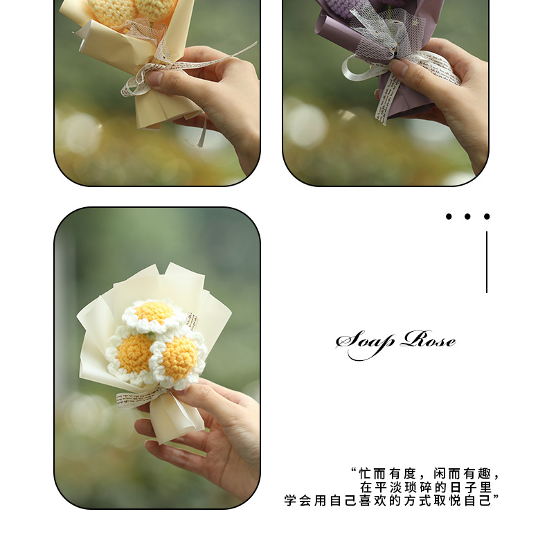 郁金香仿真花针织泡芙永生花伴手礼装饰花束教师节礼品小花束批发