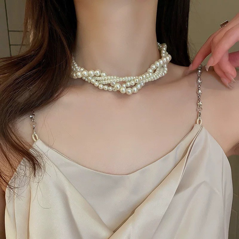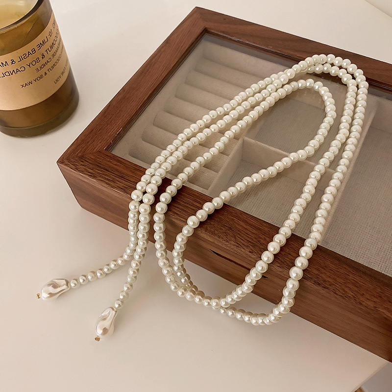 韩国东大门长款珍珠项链法式复古设计感锁骨链创意个性网红项饰女