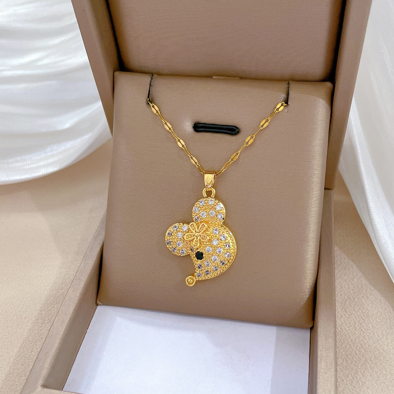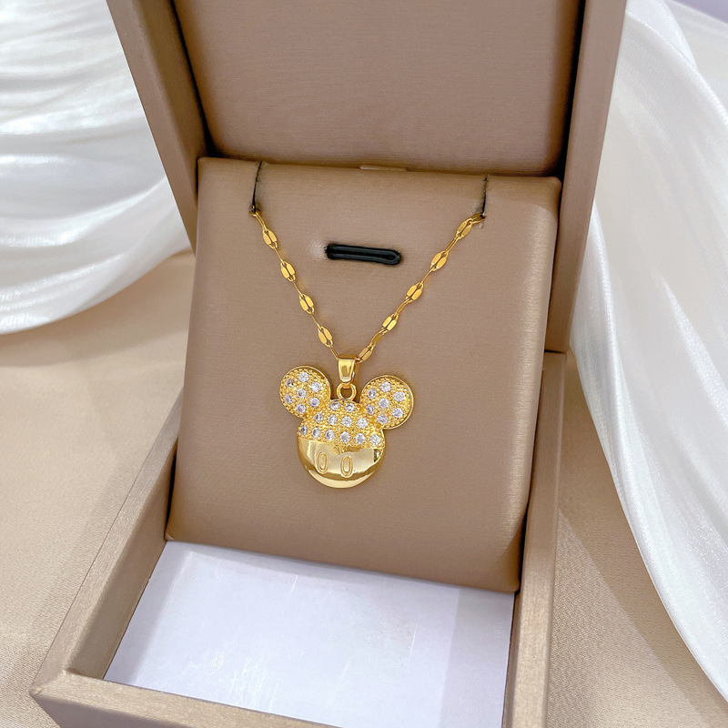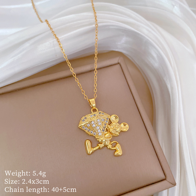 【钛钢】米奇头重工项链女铜微镶真金电镀Ins网红精致锁骨链脖链