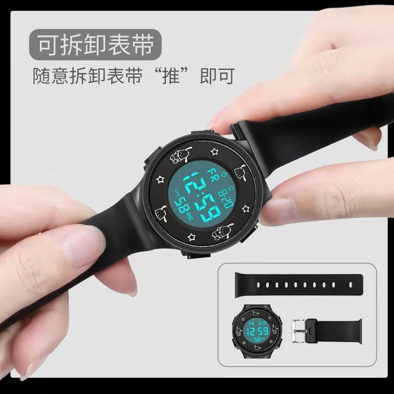 学生手表小众森系帕恰狗卡通可爱初中高中学生多功能学院风电子表