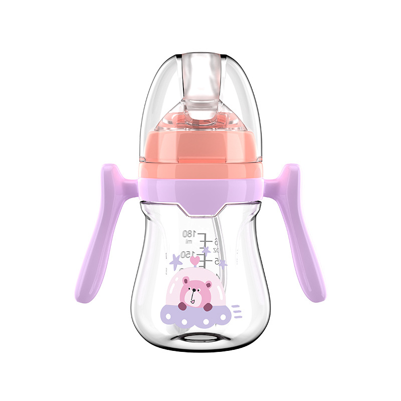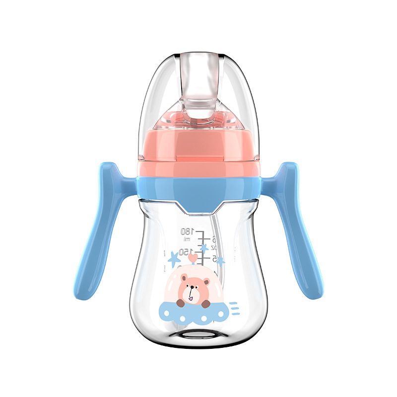 婴儿奶瓶防呛防胀气宽口径奶瓶带手柄宝宝奶瓶带吸管pp奶瓶批发