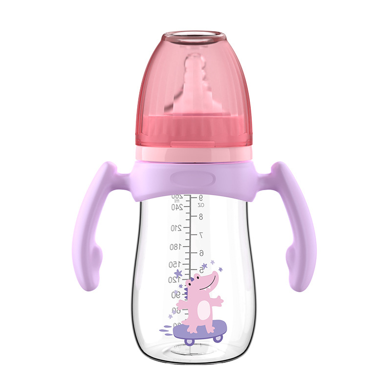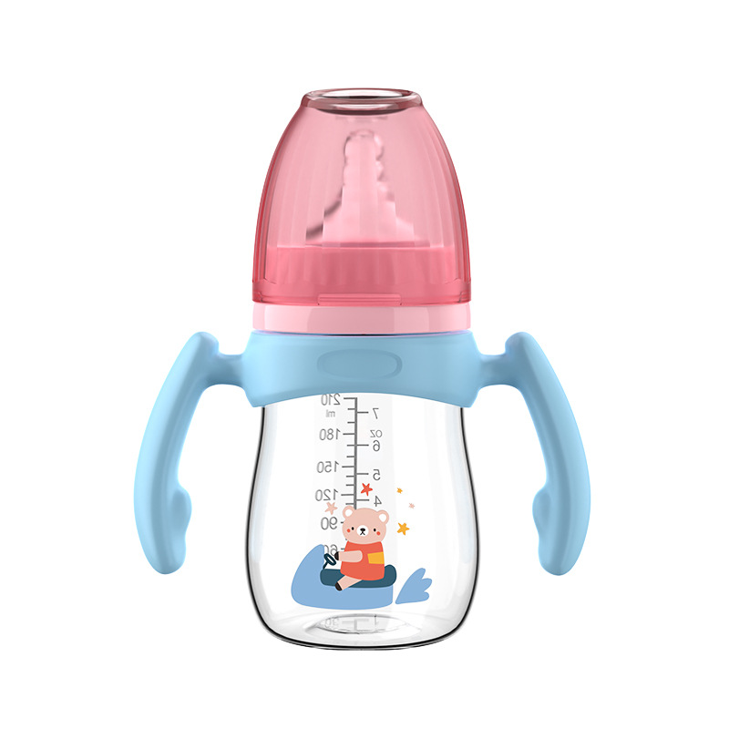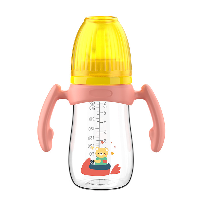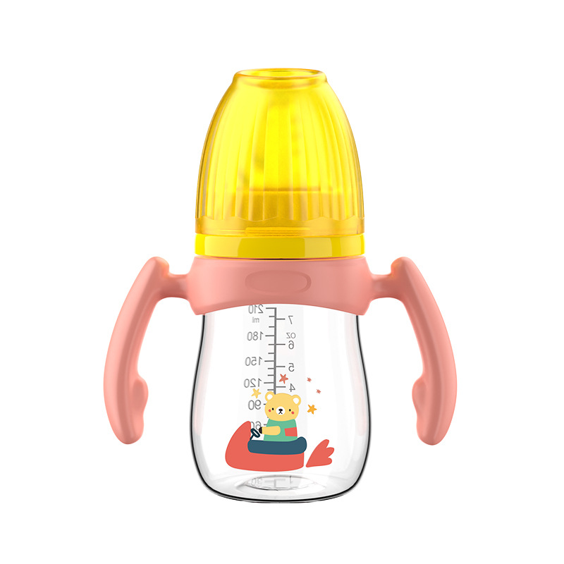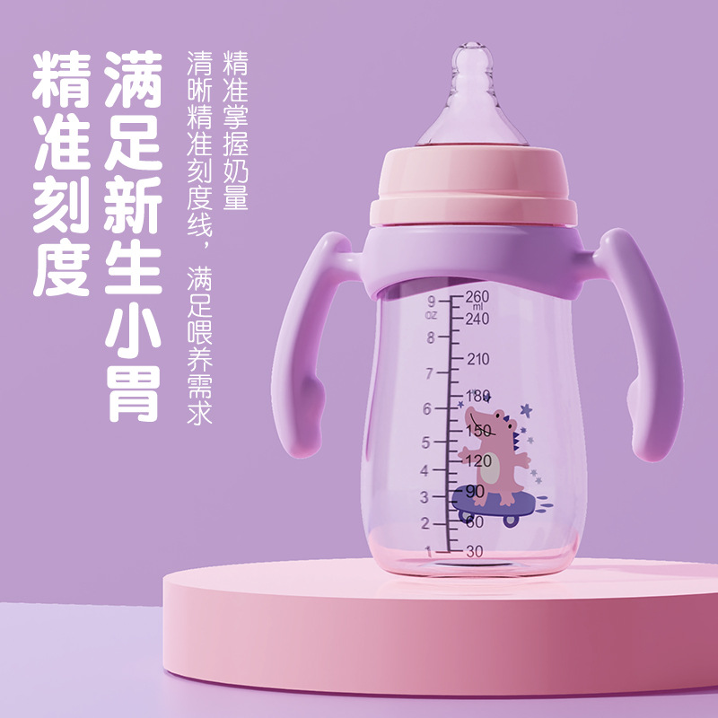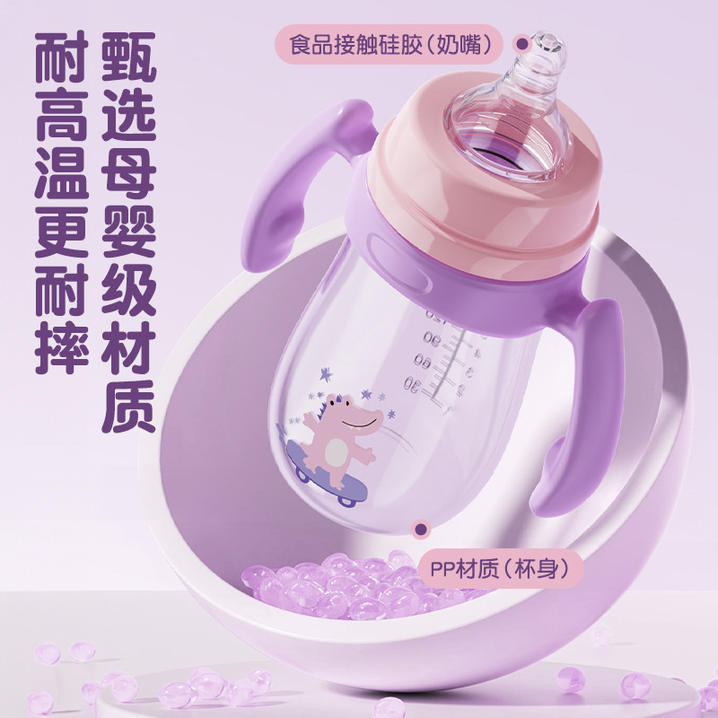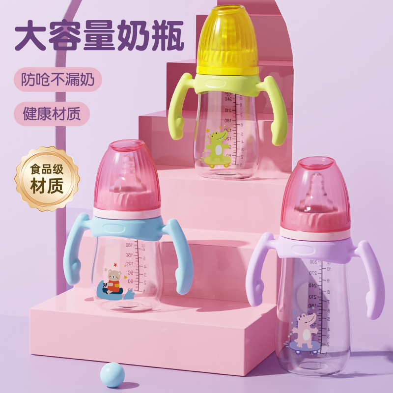 婴儿奶瓶宝宝宽口径防呛防胀气奶瓶带手柄无吸管耐摔PP奶瓶批发