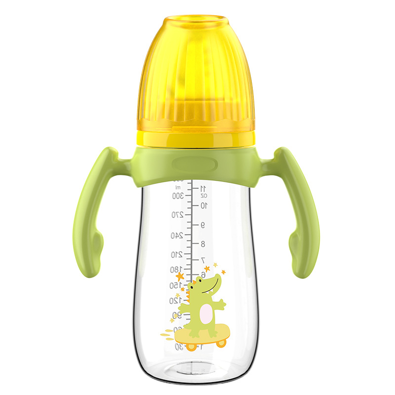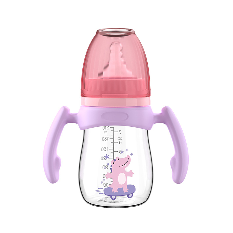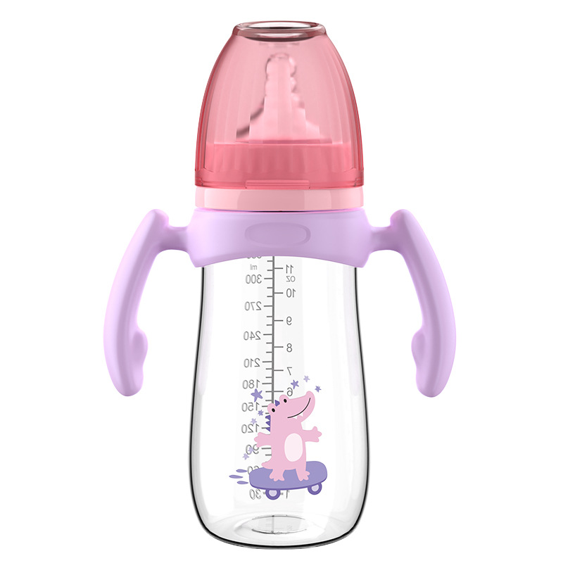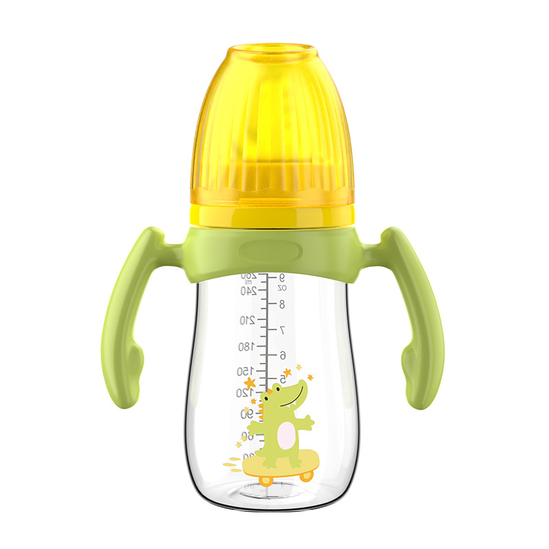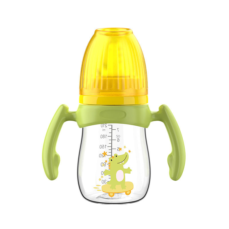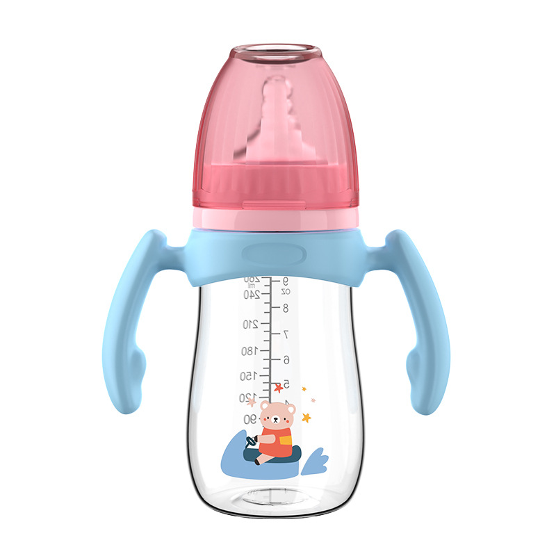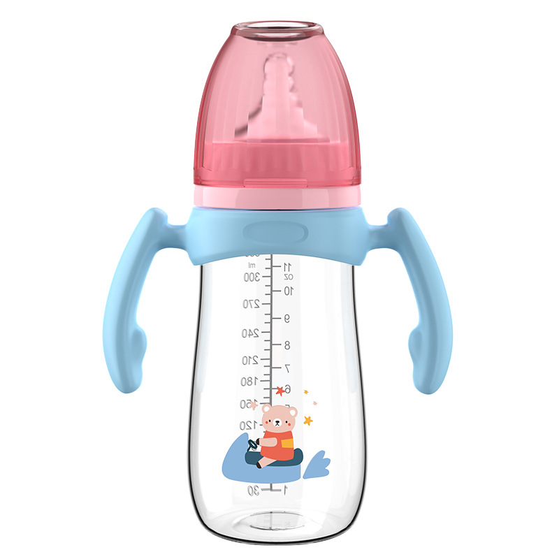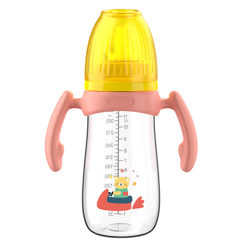 婴儿奶瓶宝宝宽口径防呛防胀气奶瓶带手柄无吸管耐摔PP奶瓶批发